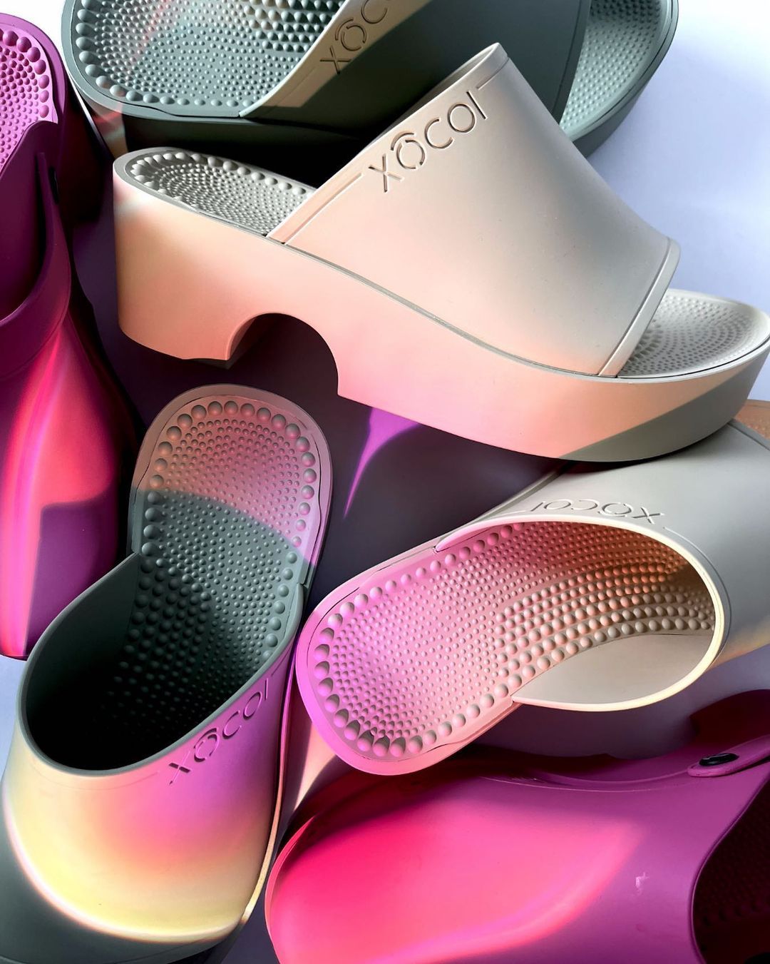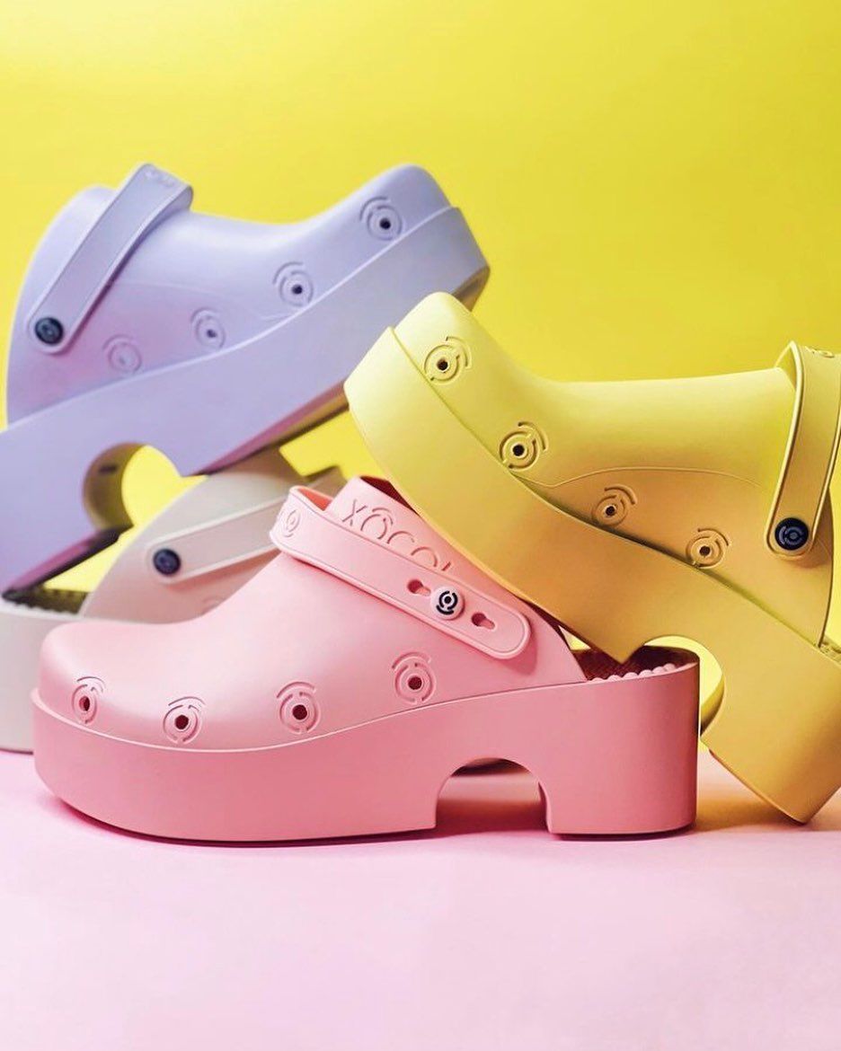 Fondato a Venezia, Xocoi realizza coloratissimi zoccoli in gomma totalmente riciclabili. Comodi e versatili, il design si adatta sia alla spiaggia che alla città. Dalle tonalità brillanti, possono illuminare look tinta unita oppure essere accostate ad un outfit color block. Molto interessante è il modello con texture floccata.
