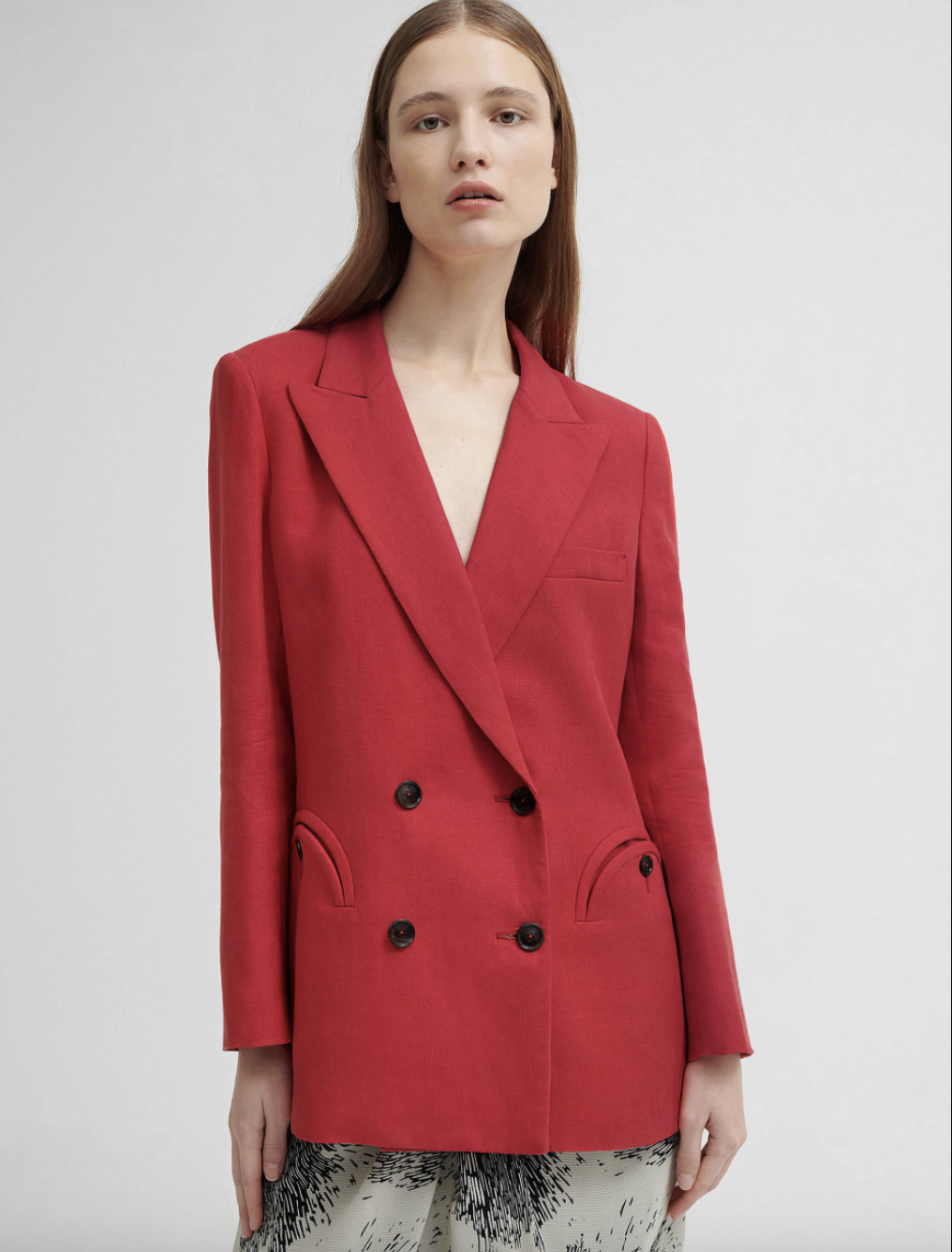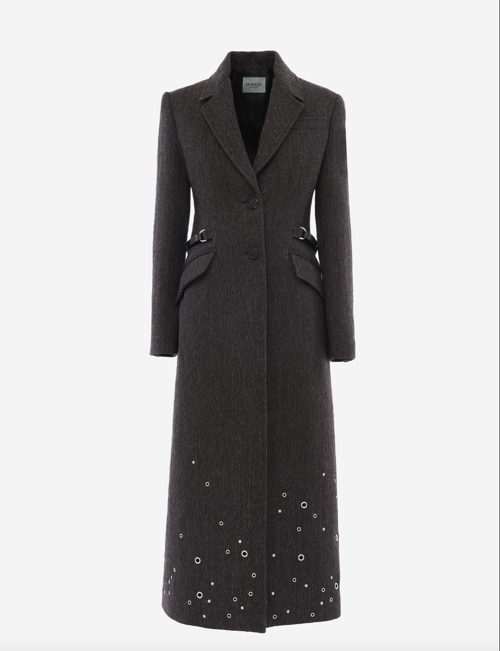 Il bomber in pelle effetto used, con polsini e bordi in maglia, lo si trova da Halfboy, cappotto extra lungo e dark grey con decori per Durazzi Milano, il trench in pelle monopetto è di PRISCAVera, blazer rosso doppiopetto con revers a lancia per Blazè Milano, il cappotto in suede beige è di Golden Goose, mentre il blazer oversize stretto in vita da cintura riporta la firma di Setchu.