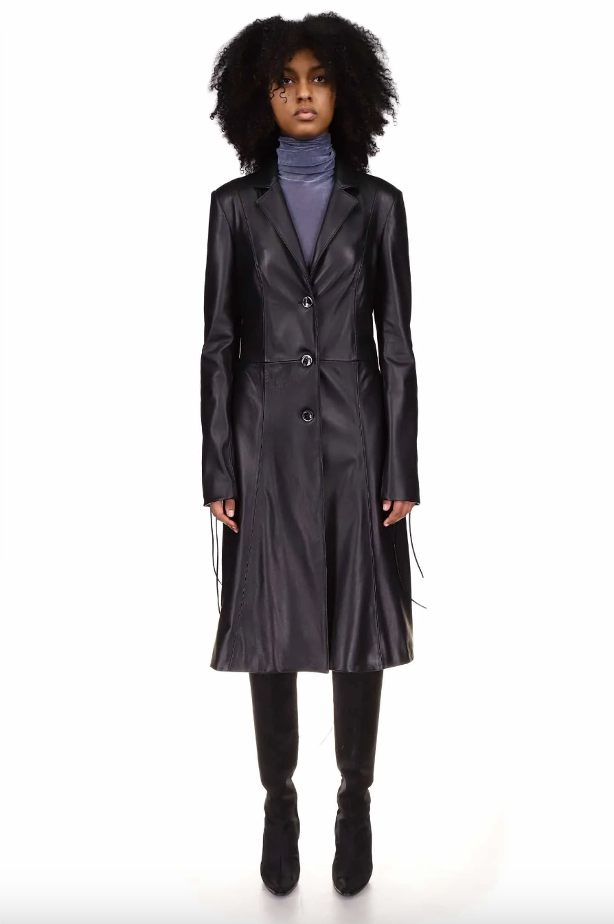 Blazer over per Valentino, giacca con sciarpa integrata per Totême, suede polvere extra long per Ferragamo, bomber puffy per EdunChoi, rosso pieno per il cappotto di Alberta Ferretti, trench in pelle per Avellano, coat nero e lungo per Alexander McQueen.