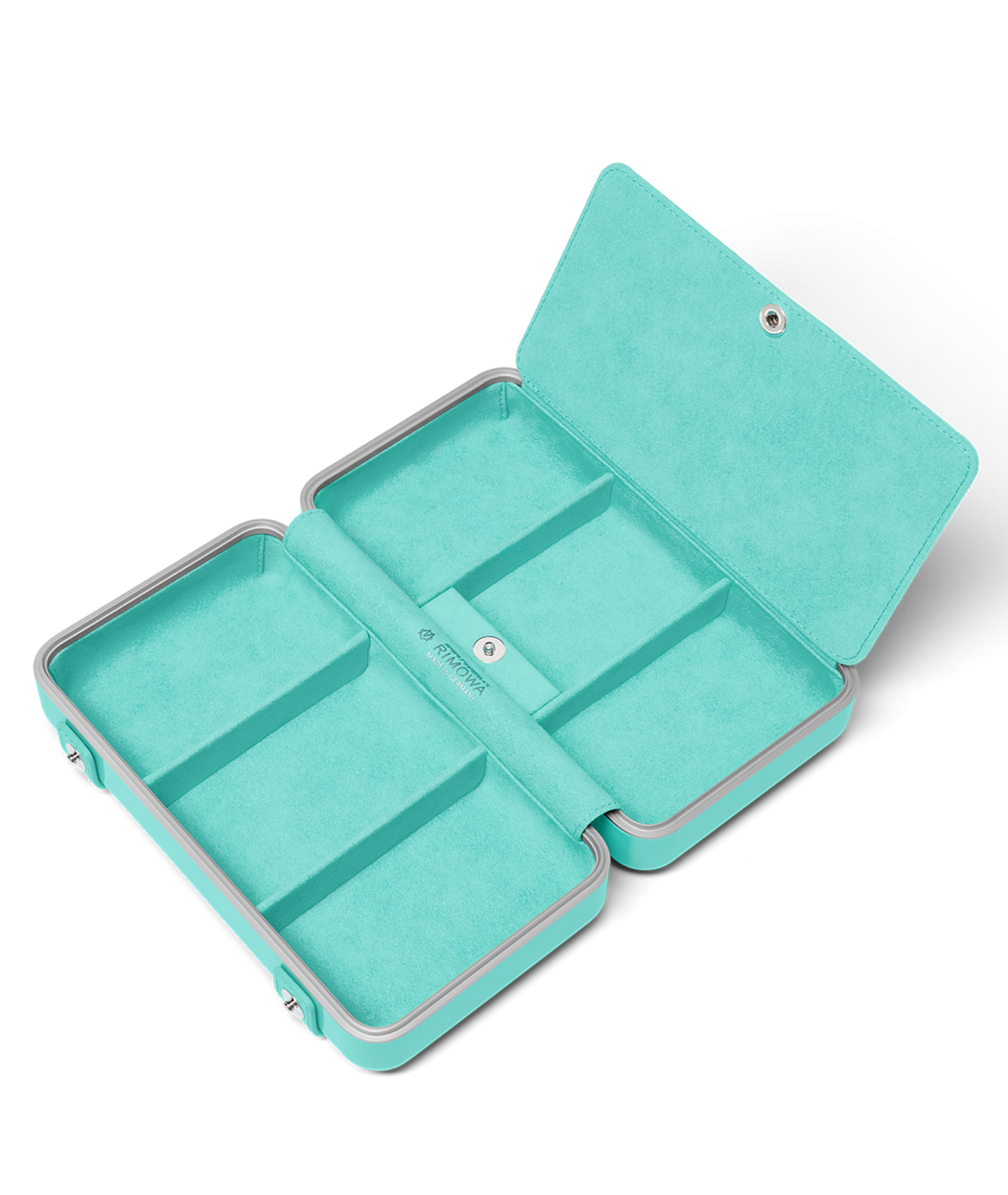 La firma in policarbonato di RIMOWA riprende totalmente il colore Tiffany Blue® nel Jewelry Personal. Adottando una nuova funzione, l'interno della custodia presenta sei scomparti per gioielli per conservare i beni più preziosi durante i viaggi. La parte esterna presenta i loghi di RIMOWA e Tiffany & Co. al centro, incisi tra due cinghie in pelle Tiffany Blue®. «Siamo orgogliosi di unire le forze con Tiffany & Co., un'altra marca leggendaria con la migliore maestria artigianale. La creazione di pezzi così funzionali e unici rappresenta i secoli di esperienza di entrambe le realtà e la maestria ingegneristica che portiamo sul tavolo», ha dichiarato Hugues Bonnet-Masimbert, Amministratore Delegato di RIMOWA. «Siamo entusiasti di presentare la collezione RIMOWA x Tiffany, che unisce due Maison con una maestria artigianale e design innovativi senza pari», ha aggiunto Alexandre Arnault, Vicepresidente Esecutivo di Prodotti e Comunicazione di Tiffany & Co. «Questa collaborazione unica unisce due icone in una sola, entrambe incredibilmente personali per me e rappresenta il massimo della maestria artigianale».