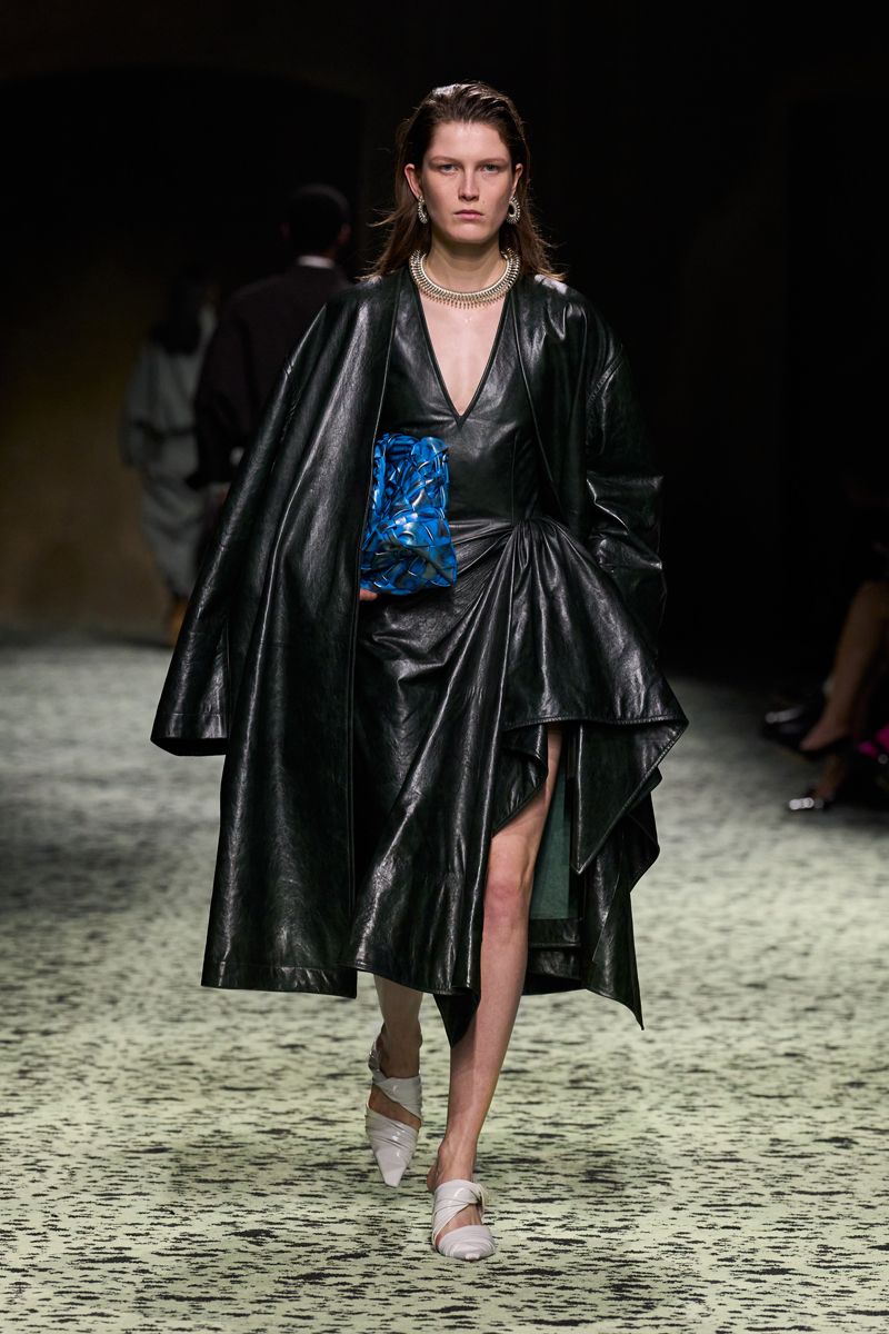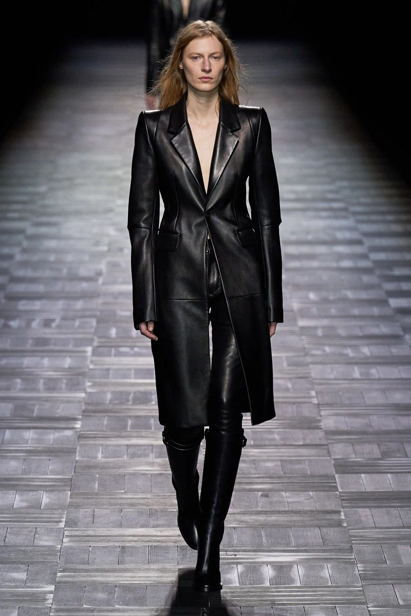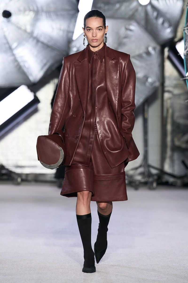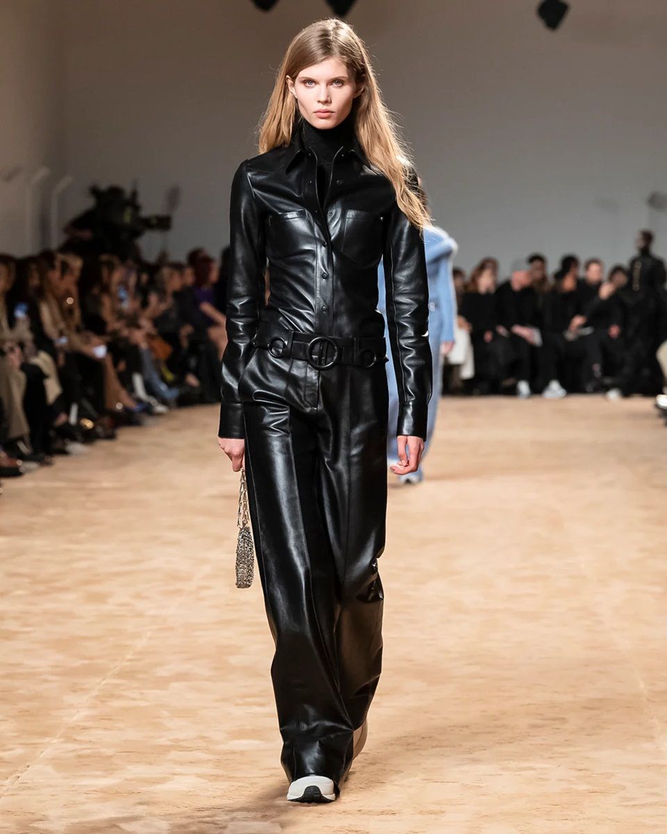 Brand e stilisti hanno più volte scelto la pelle per i loro look, flirtando a seconda del loro estro con erotismo e outfit da perfetta dominatrix o aggiungendola per dare un twist ribelle anche agli outfit più refined. La versione preferita, anche sulle passerelle FW23, rimane la nera, scelta da Bottega Veneta, Alexander McQueen, Coperni, Coach e Saint Laurent, ma spuntano anche outfit in pelle di altri colori. Ad esempio, Jil Sander ha optato per il burro, Brandon Maxwell per il marrone, Prada per il rosso fuoco, Tod’s per il grigio, Isabel Marant per il bordeaux, Miu Miu per il verde e l’arancione. Così, per questa stagione fredda via libera a pantaloni, gonne, trench, dress e stivali. Purché in pelle.