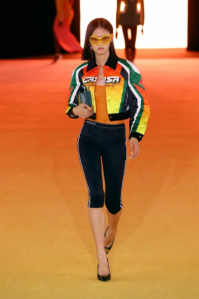 Di blokecore si sente parlare da diverso tempo ormai e il trend continuerà ad influenzare il modo in cui ci vestiremo anche nel 2024, abbracciando sport diversi. Non solo calcio, quindi, ma anche tennis, sci, football, trekking, nuoto, motociclismo, formula 1. La conferma arriva anche dalla rinnovata passione verso la passione per lo sport e l’athleisure condivisa, tra le altre, da influencer e celeb come Emili Sindlev, Caroline Daur e Rosie Huntington-Whiteley abituali della F1 o di Kylie Jenner, Nicole Kidman, Katie Holmes, Hailey e Justin Bieber nel pubblico degli US Open. E che dire di Taylor Swift alle partite dei Kansas City che ha causato un aumento delle vendite del merchandising di Travis Kelce di quasi il 400%, secondo Axios? Anche le passerelle SS24, da Miu Miu a N°21; da Wales Bonner a Ksenia Schnaider, ci dicono di introdurre nei nostri guardaroba maglie da calcio, boxer da pugilato, shorts da piscina, sneakers, polo da football, pezzi Après-ski, jersey da basket e giacche tecniche da montagna. Tutti item da mescolare con pezzi basic o ultra-femminili.