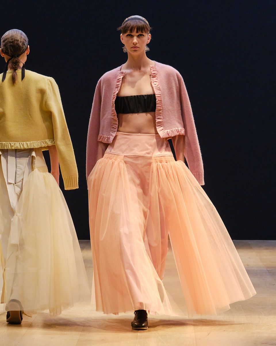 Non siamo pronti ad abbandonare lo stile coquette, il balletcore, i fiocchi, le ruches, le gonne vaporose, i glitter, le perle e le pietre scintillanti, e le mary jane, le ballerine, l’estetica di Bridgerton, il romanticismo e gli outfit girly. Le collezioni già presentate per la prossima primavera-estate 2024, i video più virali di Tik Tok e i dati di ricerca di Google lo confermano registrando un aumento del 190% e del 180% nelle ricerche come "Abito con fiocco" e "Collana con fiocco". Le previsioni di Depop per il 2024 dicono che abbracceremo una fase fashion Post Romance basato su concetto di femminilità che rompe i labili confini di menswear e womenswear sposandosi con la moda genderless e che il rosa si trasformerà in rosso, le fantasie a fiori diventeranno più concettuali e strutturate e ci sarà una twist più concreto. Le ispirazioni dalle passerelle? Sandy Liang, Simone Rocha, Aknvas, Marco Rambaldi, Batsheva o Yuhan Wang.