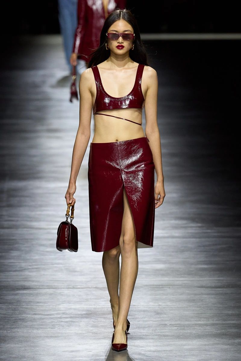 Secondo l’account Instagram @databutmakeitfashion, nel 2023 le ricerche per il colore "Cherry Red" sono aumentate di interesse di quasi il 300%, grazie a trend come Tomato Girl, #APopofRed e lo spopolare delle calze rosse. Nel 2024 l’amore per il colore rosso, dalla tonalità più accesa fino al Black Cherry Red, continuerà a dare un tocco di colore ai nostri outfit. Basta guardare le collezioni SS24 per accorgersene. Tra quelli che hanno portato le sue nuances in passerella ci sono stati Gucci, dove la prima collezione di Sabato De Sarno ha fatto largo uso di una tonalità che ha soprannominato "Gucci Rosso" su gonne, blazer, giacche e accessori, ma anche Rick Owens, Hermés, Versace, Tom Ford, Burberry, Chanel, Bottega Veneta e Prada.