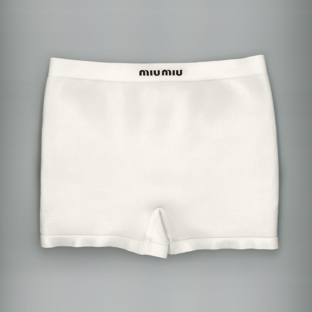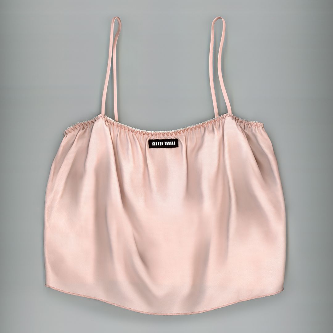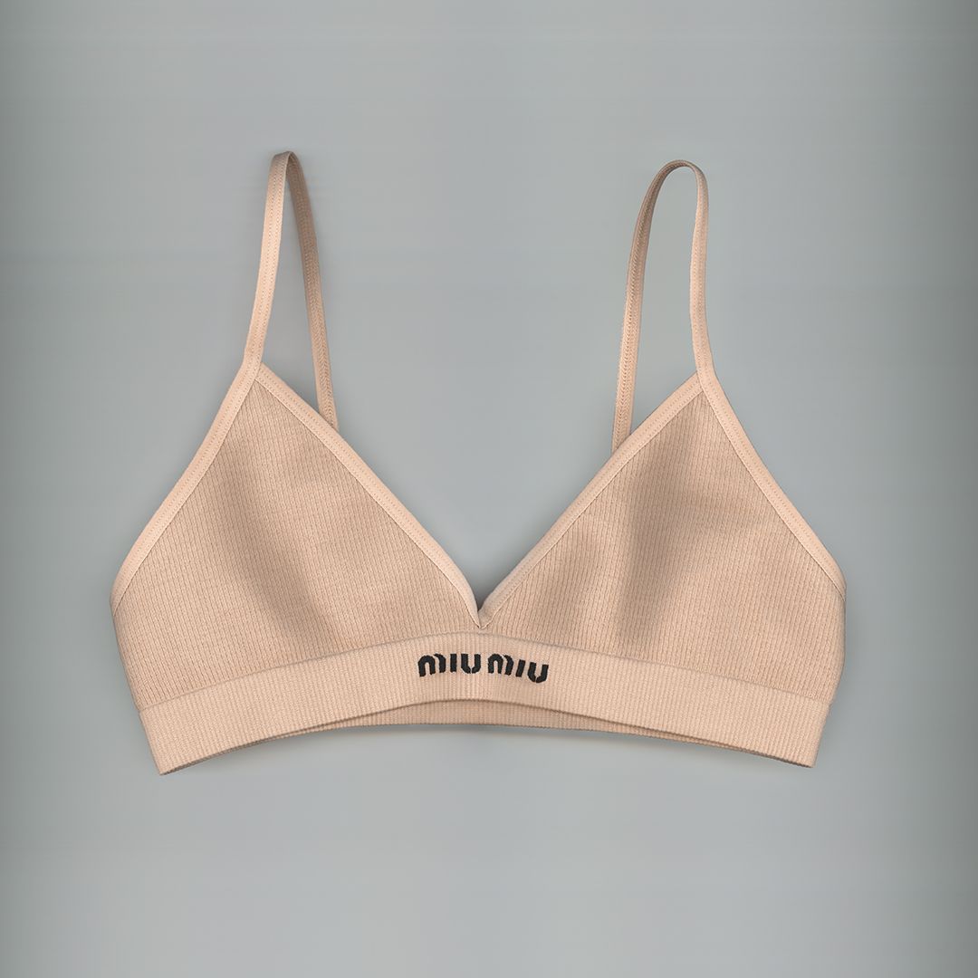 La prima collezione è quella seamless, in tessuti tecnici e silhouette sportive con logo, per le anime casul e per la vita di tutti i giorni. È disponibile da febbraio, ed è perfetta per realizzare look layered, magari con la fascia con logo a vista che sbuca dai pantaloni a vita bassa o sotto una gonna trasparente. Proprio come Emma Corrin nella campagna Miu Miu spring 2024. In questo drop non solo slip e bralette comode, ma anche un paio di culotte e un top con spalline incrociate.