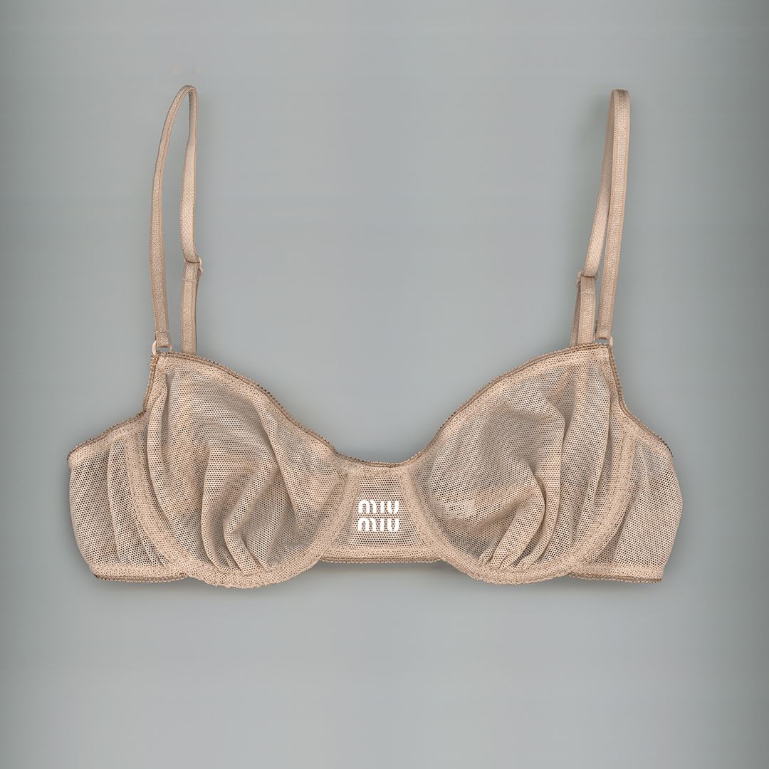 La terza collezione comprende reggiseni e mutandine in tulle leggero ed è disponibile in due colori: beige e nero, a partire da luglio. È la collezione più elegante ed esclusiva, che richiama direttamente quelle che sfilano in passerella, e che riprende il beige quasi marroncino tanto amato da Miu Miu, ma che non rinuncia a un hint di sensualità, poiché è trasparente. Il modello di punta è la bralette a balconcino con logo centrale.