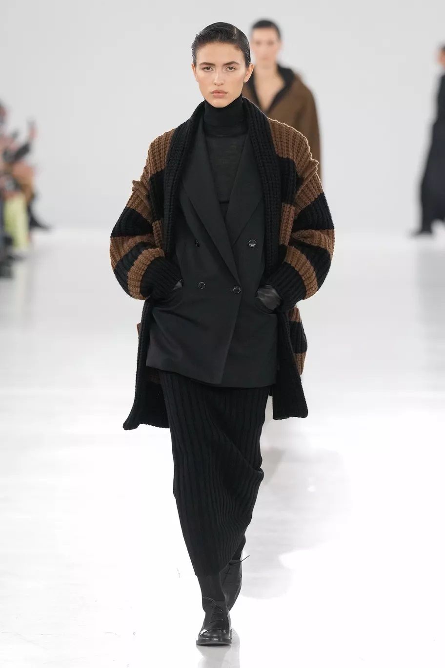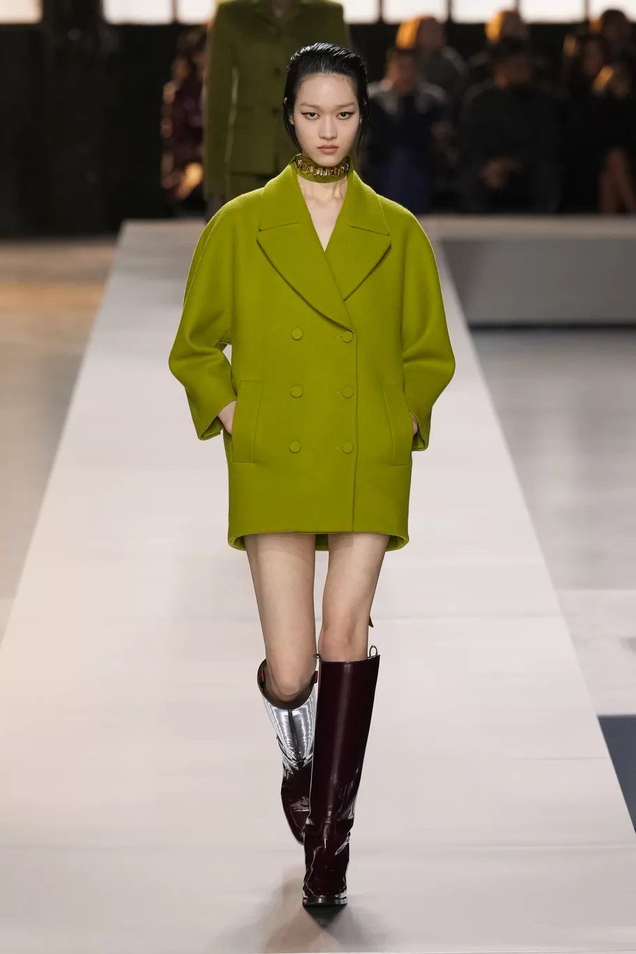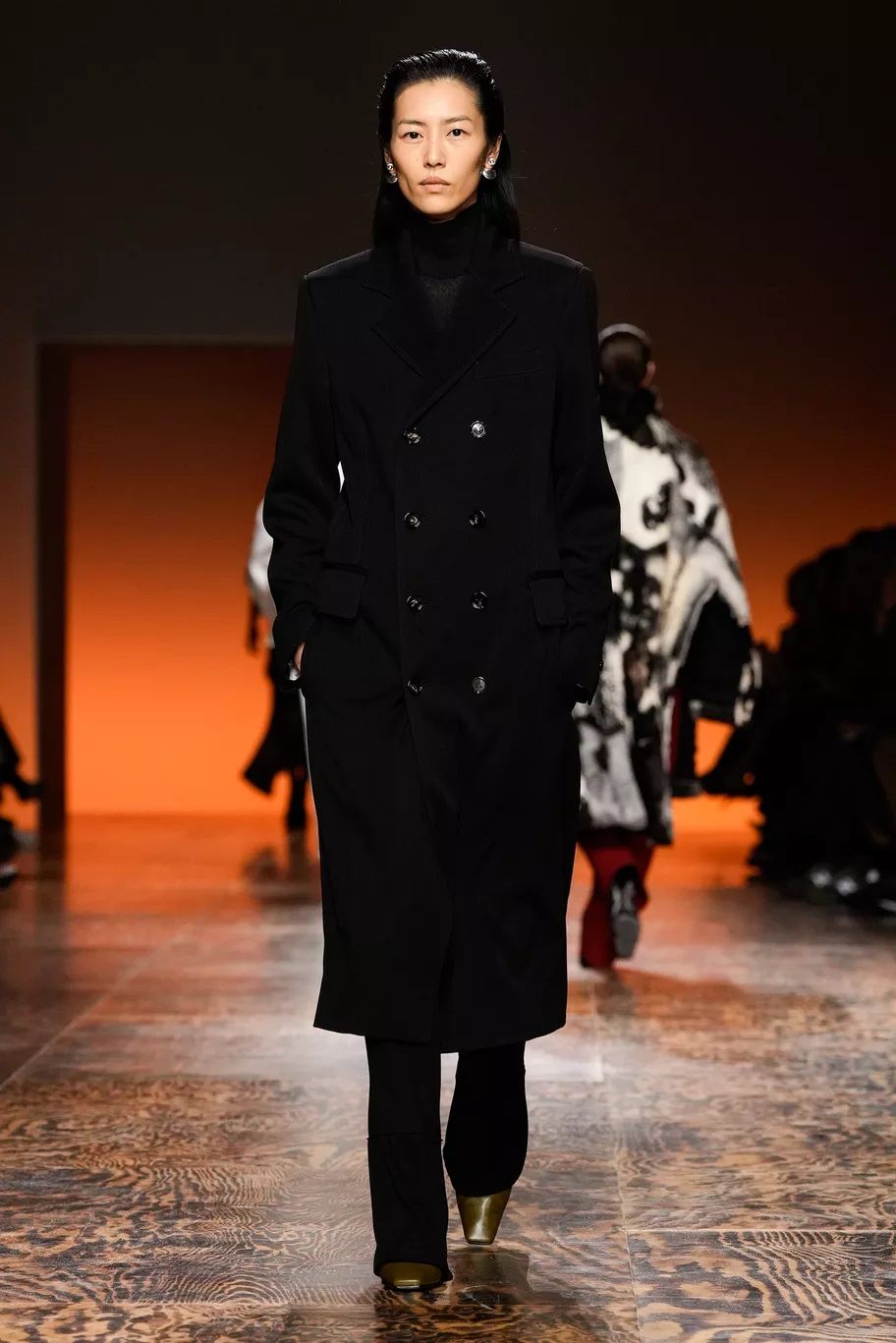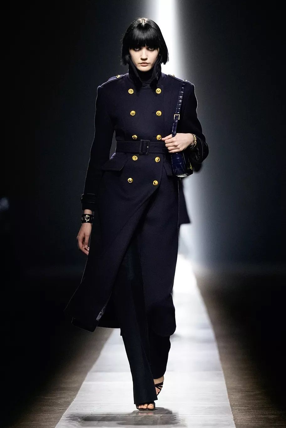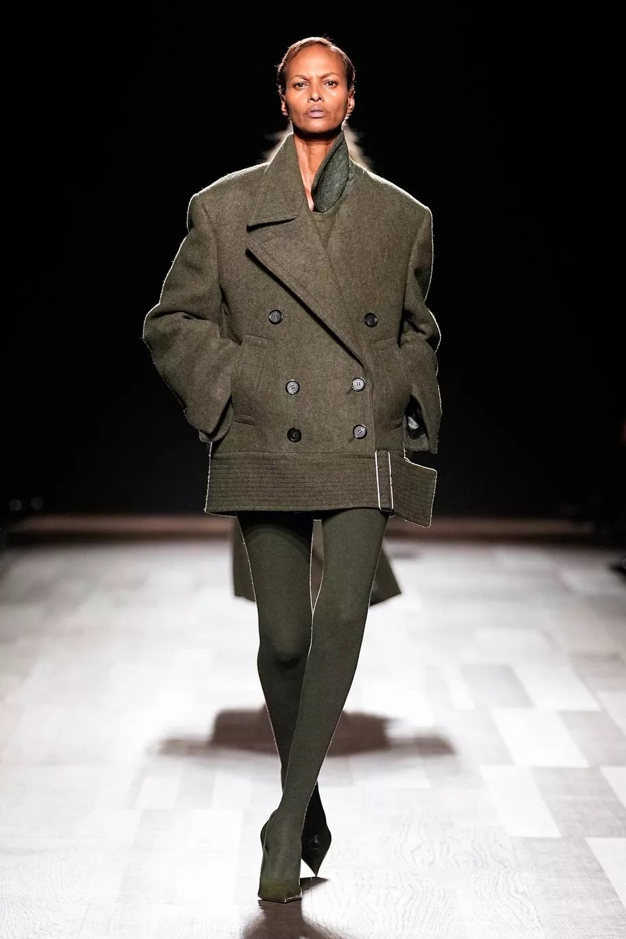 Il capospalla prediletto dai brand per la FW24 è il cappotto militare, rivisitato a seconda degli stili peculiari di ognuno, ma sempre doppiopetto e dalla silhouette slanciata. L’effetto può essere rigoroso come quello proposto da Tom Ford, sensuale come da Dolce&Gabbana che lo fanno indossare sopra la lingerie, più contemporaneo come da Gucci o classico come da Max Mara.