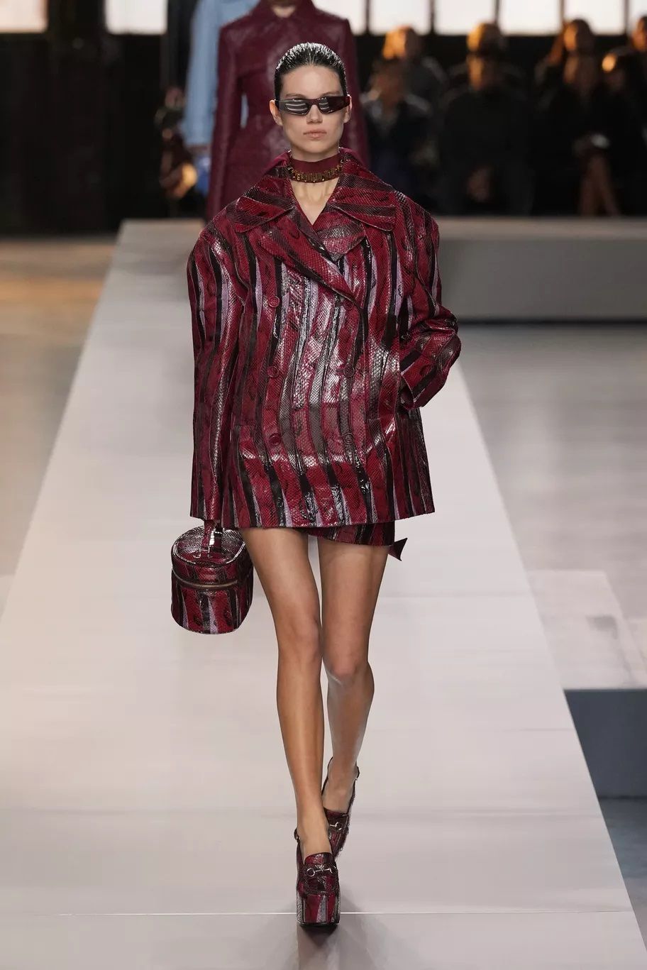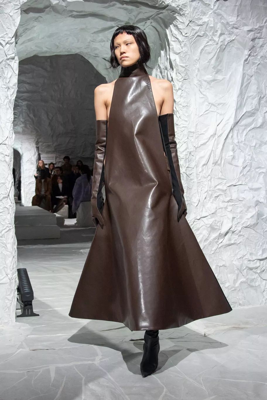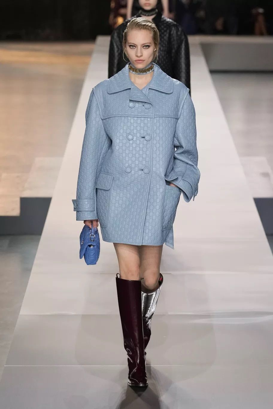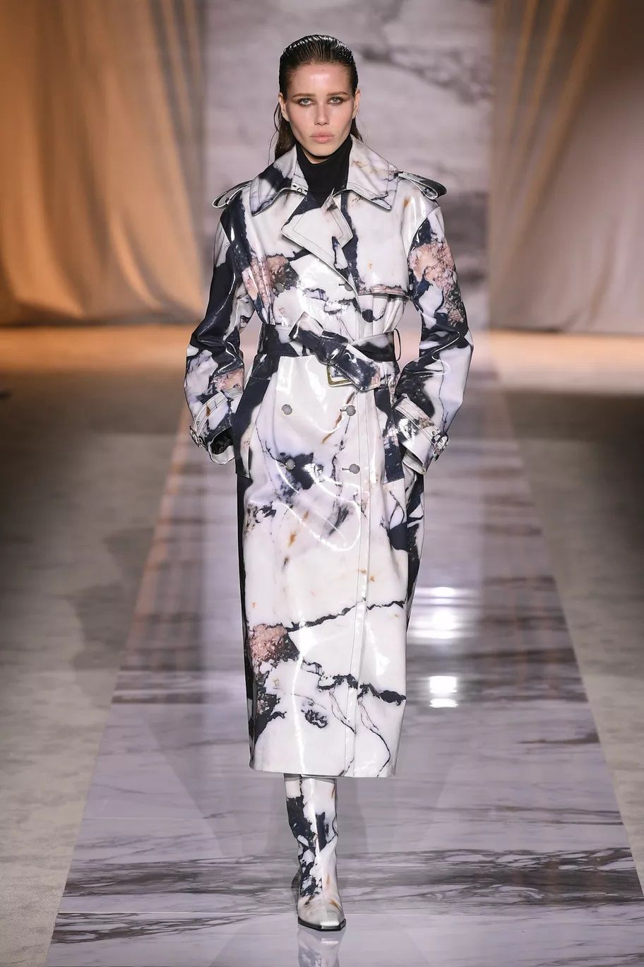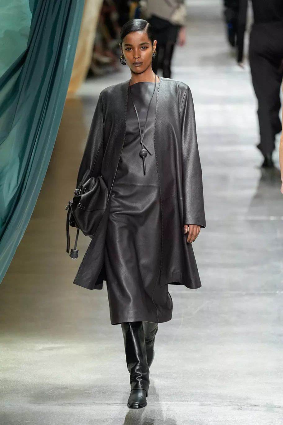 Maxi trench, abiti, pantaloni, bluse, cuissardes, borse, …purché siano declinati in pelle, dal finish lucido, quasi vinilico. Gucci ha creato look total leather con caban che si portano con le minigonne e gli stivali alti; Marni ha abbinato lunghi abiti a triangolo a eleganti opera gloves; Ferrari ha optato per un effetto stropicciato e silhouette workwear; Fendi ha realizzato camicie e leggings attillatissimi. Il vero capo che trova un nuovo twist e aggiunge un tocco edgy ad ogni outfit è il trench in pelle, proposto, tra gli altri, da Dolce&Gabbana, Bottega Veneta e Iceberg. Il plus? È anche l’item passe-partout per andare dall’inverno alla primavera.