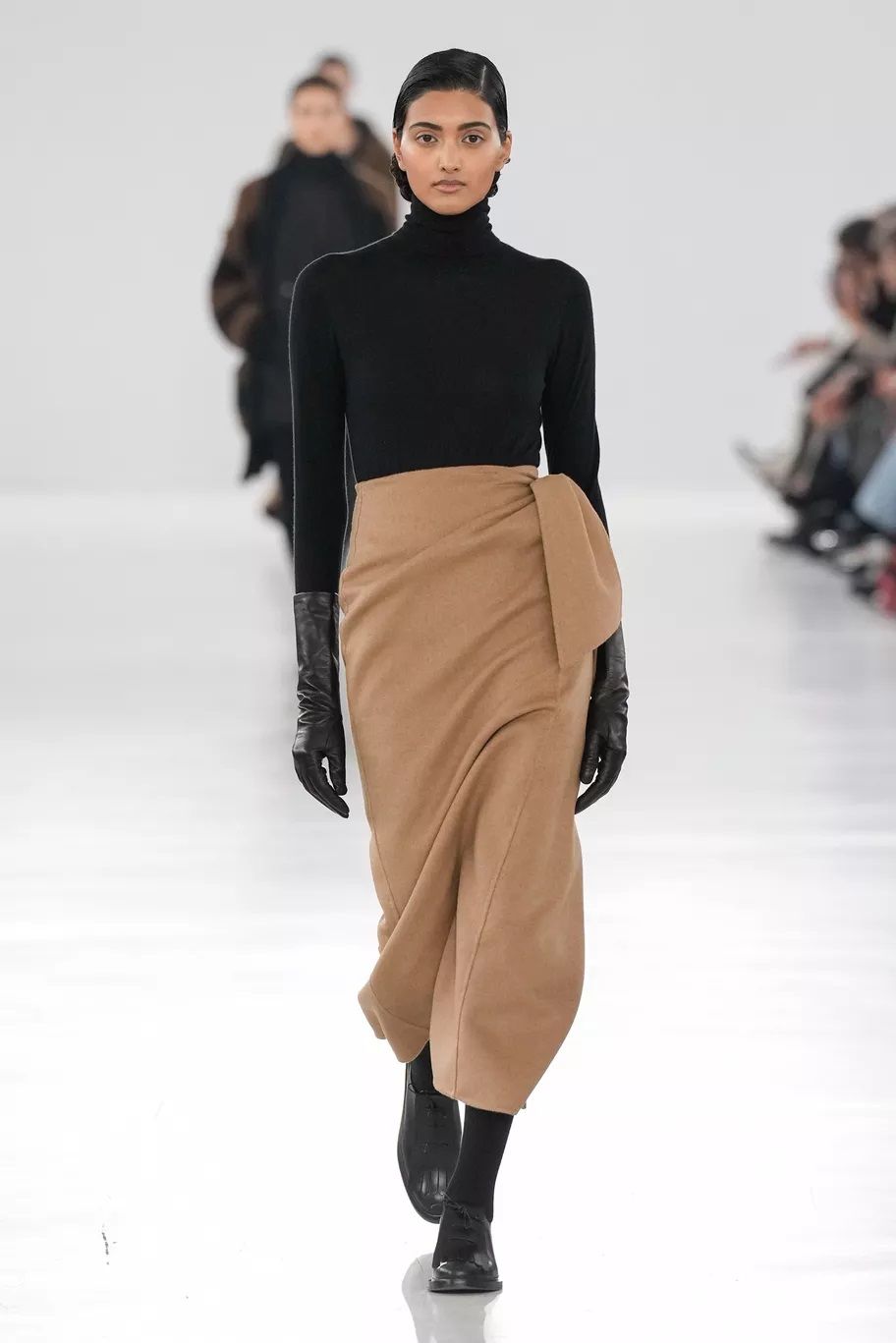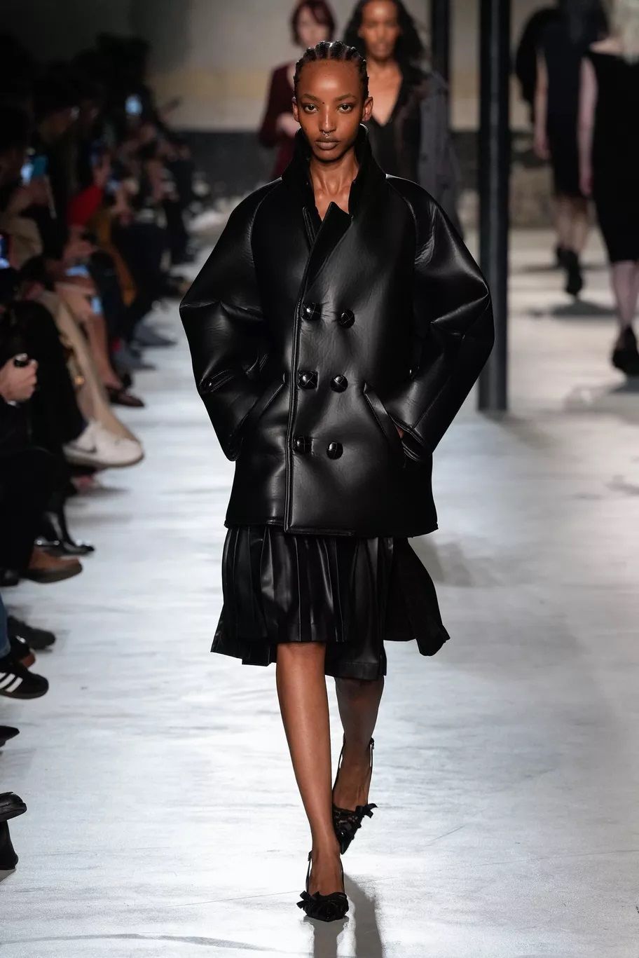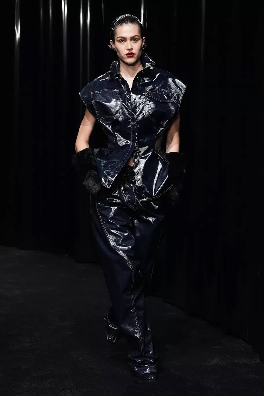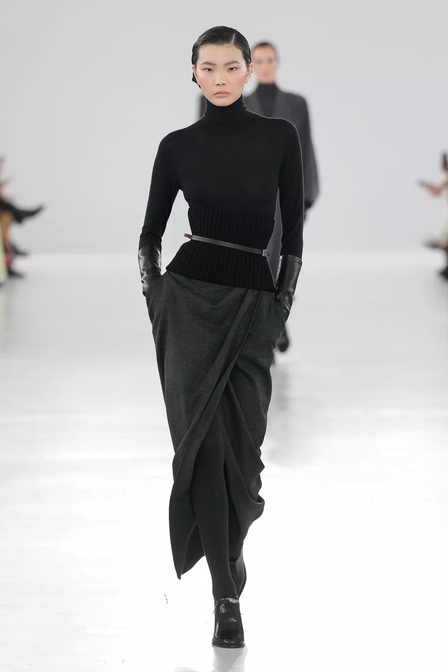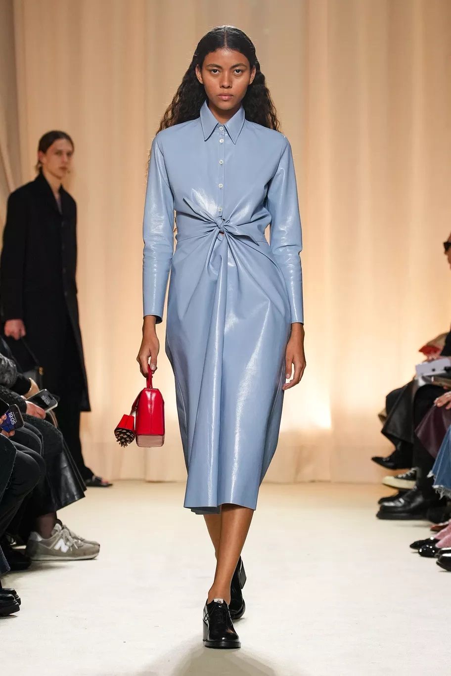 Maxi trench, abiti, pantaloni, bluse, cuissardes, borse, …purché siano declinati in pelle, dal finish lucido, quasi vinilico. Gucci ha creato look total leather con caban che si portano con le minigonne e gli stivali alti; Marni ha abbinato lunghi abiti a triangolo a eleganti opera gloves; Ferrari ha optato per un effetto stropicciato e silhouette workwear; Fendi ha realizzato camicie e leggings attillatissimi. Il vero capo che trova un nuovo twist e aggiunge un tocco edgy ad ogni outfit è il trench in pelle, proposto, tra gli altri, da Dolce&Gabbana, Bottega Veneta e Iceberg. Il plus? È anche l’item passe-partout per andare dall’inverno alla primavera.