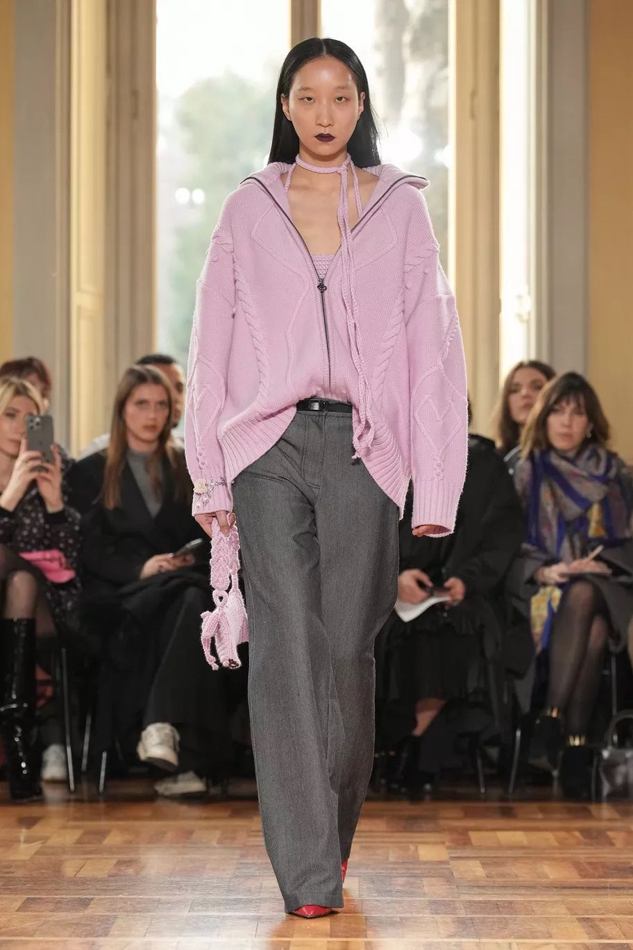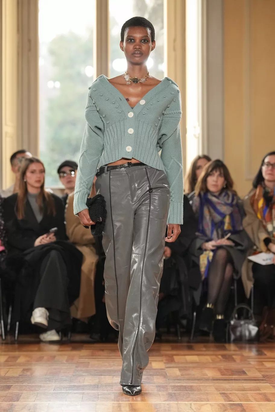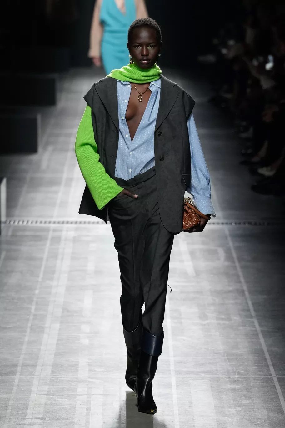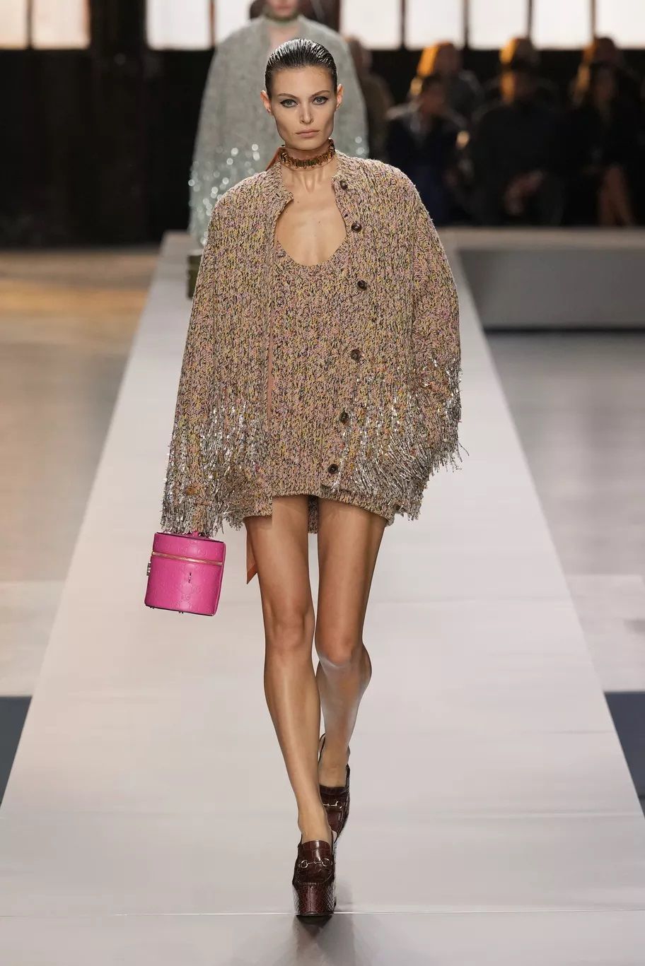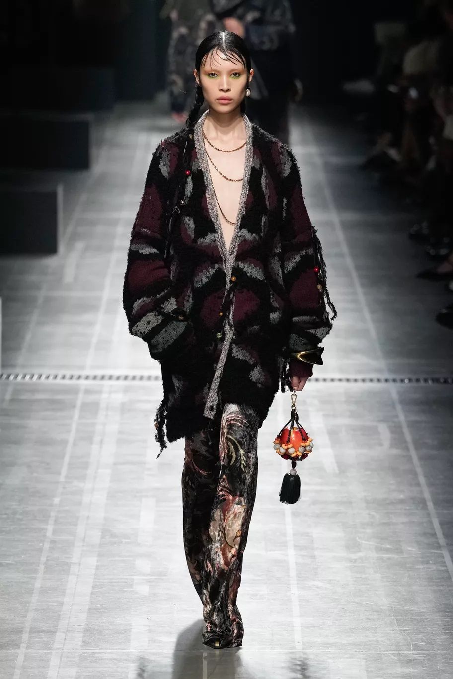 Complice l’estetica Grandpa Core, il cardigan in maglia, meglio se maxi, caldo, avvolgente e cozy è tornato e si indossa con tutto, dalle minigonne ai pantaloni in pelle o si usa come fosse un delizioso mini dress. Prada lo usa per dar vita a twin set dai colori spaiati, da Gucci le modelle lo portano sbottonato sopra abiti matchy-matchy, Marco Rambaldi lo propone sia con la zip sia coi bottoni, mentre Iceberg lo preferisce a quadri, quasi grunge.
