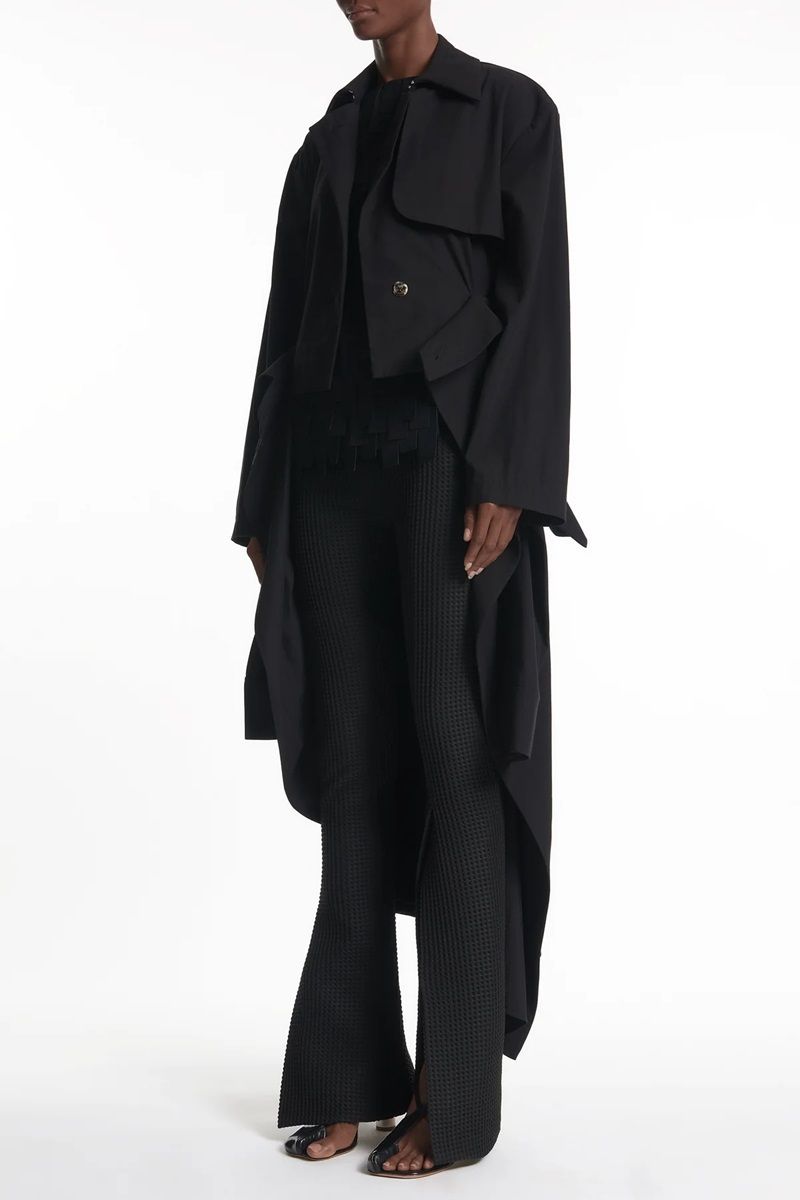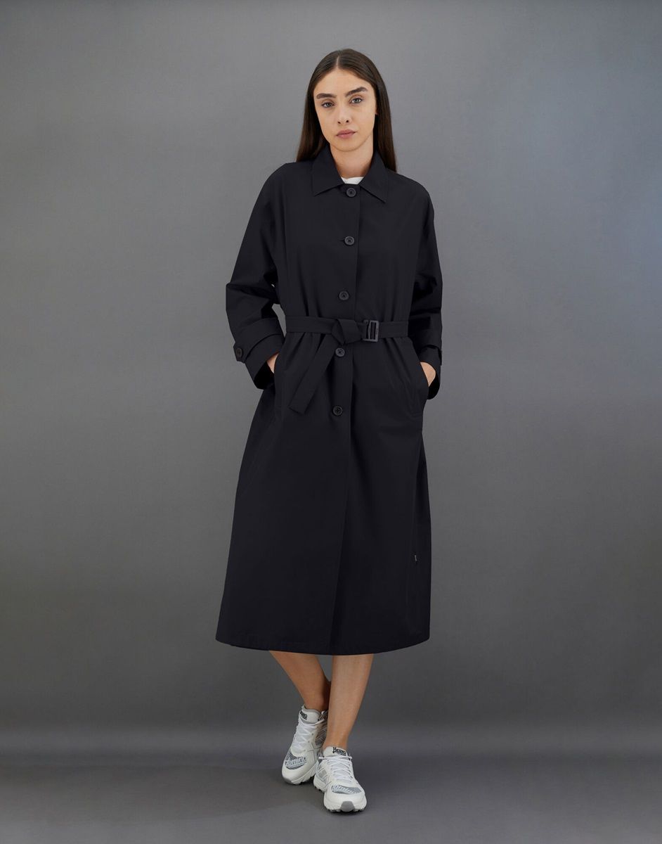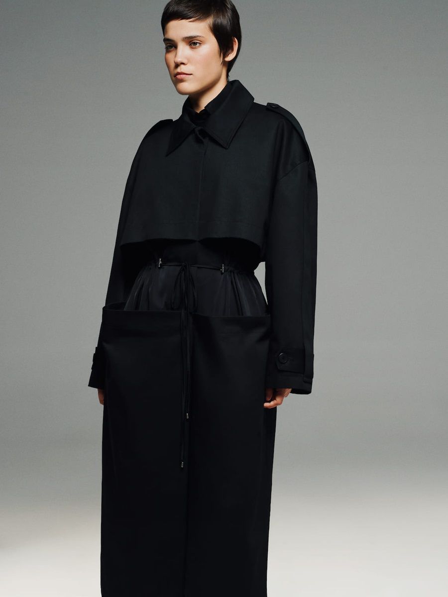Il trench nero è la soluzione per chi non rinuncia al tocco dark nemmeno in primavera. Per valorizzarlo al massimo meglio optare per una silhouette strutturata, quasi militare, con spalle ampie e cintura da stringere in vita. Bellissimo il modello di Awake, tagliato in uno stravagante trompe l'oeil e indossabile in due pezzi. Essenziale, invece, la proposta di Herno, che punta sul tessuto impermeabile, anti-vento e altamente traspirante. Interessante anche il trench del brand ucraino Olēnich che si distingue per la zona della vita in seta.