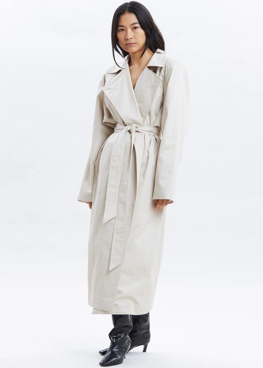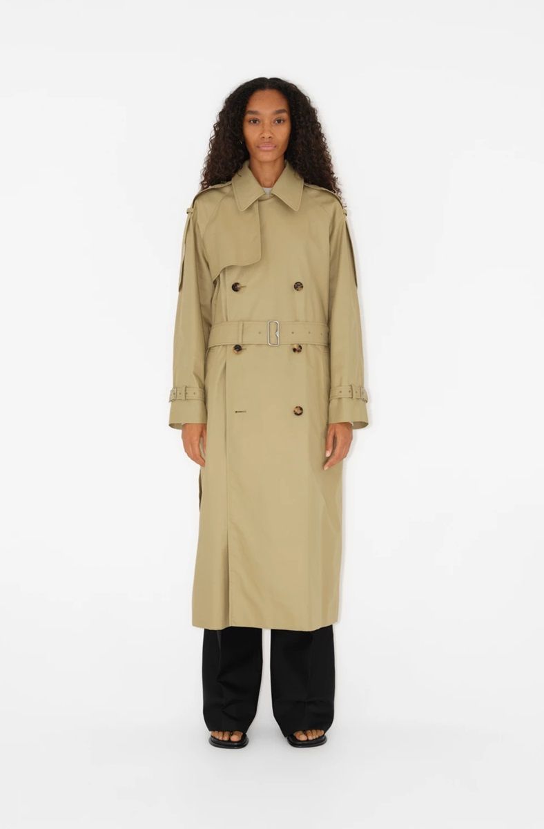 Se pensiamo di acquistare un solo capospalla da indossare con tutto e in ogni occasione, allora dovremmo puntare sul classico trench beige. L’investimento da fare nella mezza stagione che ci risolverà ogni look grazie al suo stile effortless è, naturalmente, firmato Burberry. Il marchio è da sempre sinonimo di trench di qualità, ma per la SS24 è perfetto l’Highgrove Castleford lungo in gabardine di cotone, dalla vestibilità oversize e le maniche raglan, con fodera in seta stampata e delphinium dipinti a mano dall'artista britannica Holly Mills. La sciarpa staccabile caratterizza il trench doppiopetto beige di Acne Studios, un capo cool dal taglio rilassato, perfetto da abbinare con gonna e mocassini o con jeans e stivaletti.