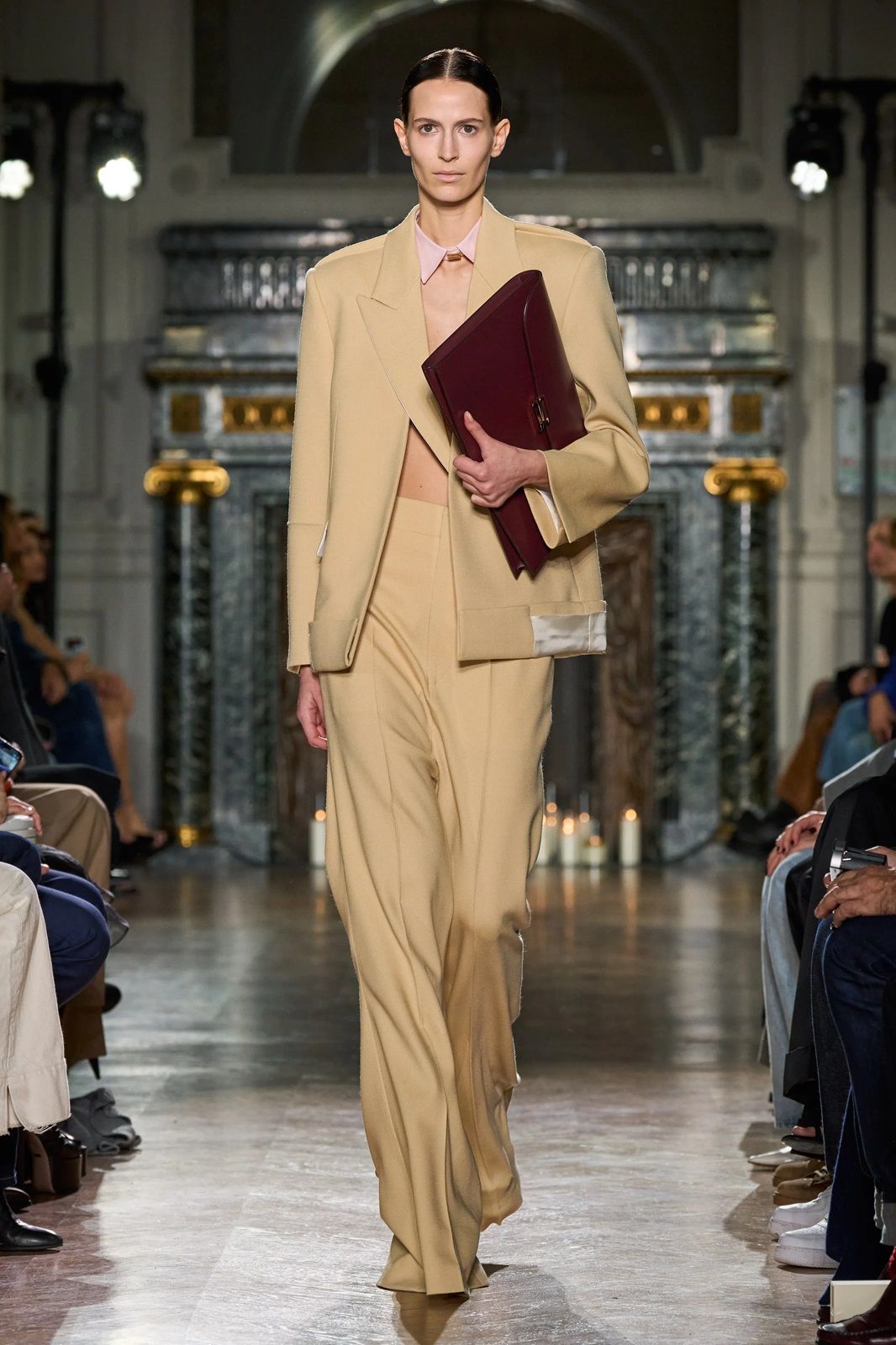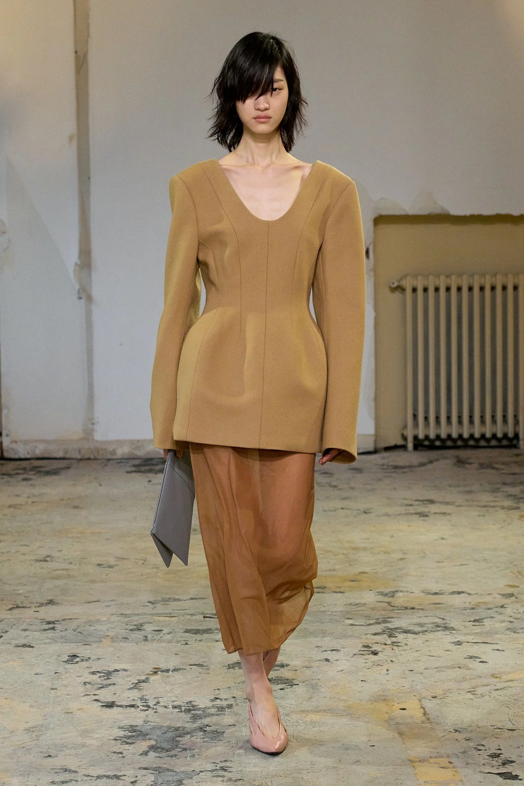 On the catwalk: il classico cammello assume un aspetto più energico e dinamico sulle passerelle dell'autunno 2024, con toni più caldi o più freddi che ricordano talvolta il sesamo tostato, talvolta la mandorla. La sua versatilità e raffinatezza lo hanno reso perfetto per i look di stagione e per dare ricercatezza a capi spalla, pullover ed abiti. In passerella lo abbiamo visto, tra gli altri, da Saint Laurent, Dries Van Noten, Victoria Beckham, Courreges, Tibi e Chloé.