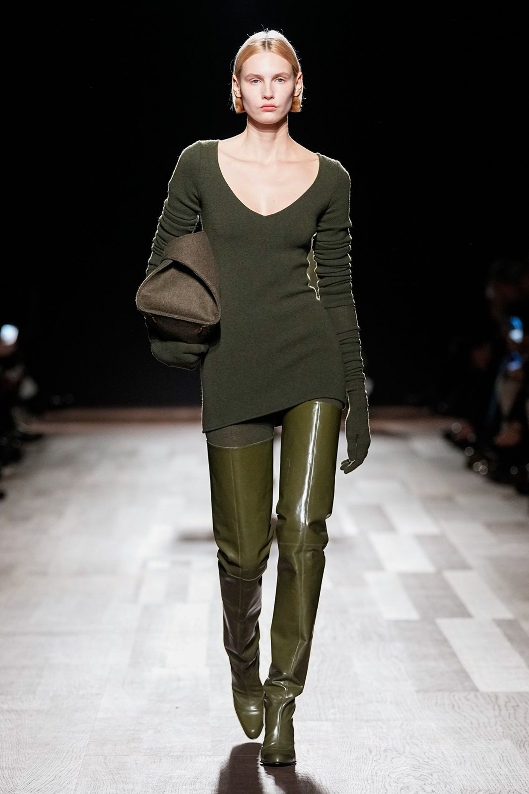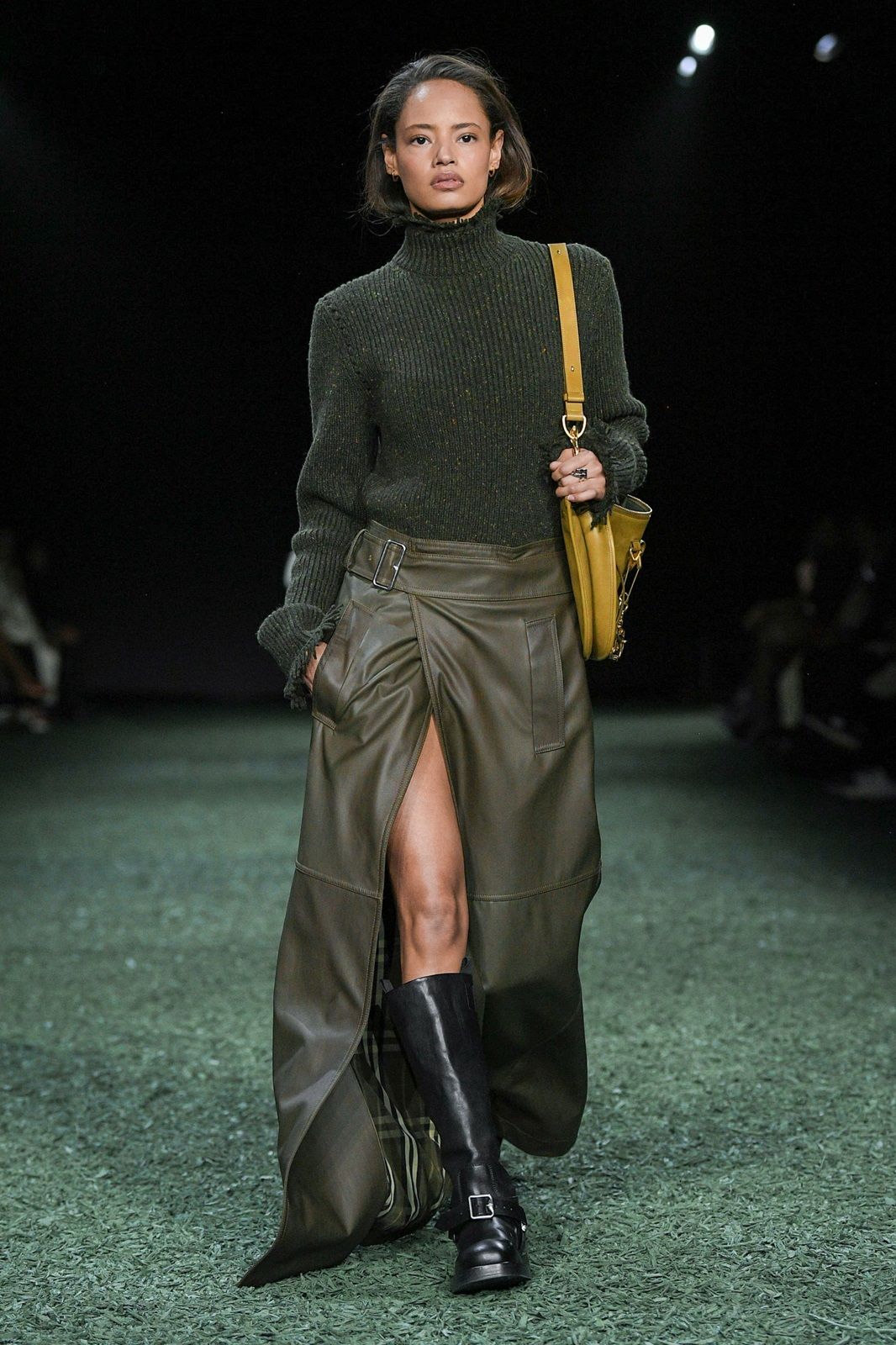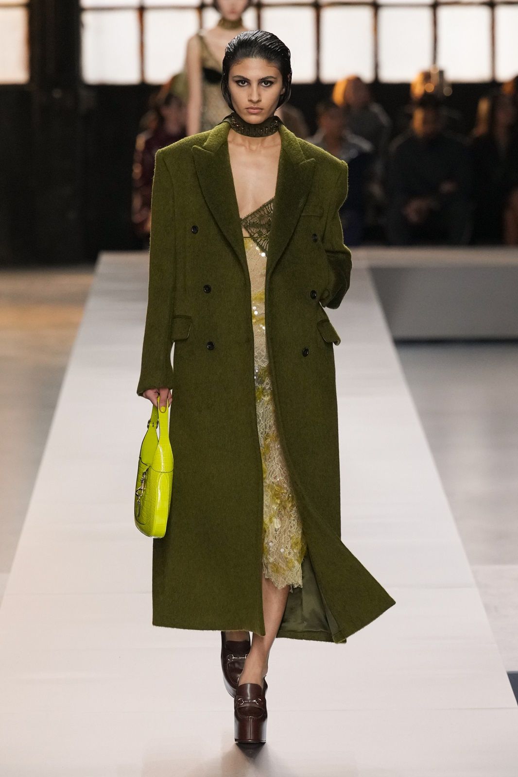 On the catwalk: è decisamente uno dei colori di stagione, scelto da tanti brand, come Burberry, Ferragamo, Luisa Spagnoli e Isabel Marant, per look monocromatici. Marant ha usato il cachi per dare un tocco di audacia e rigore alle sue silhouette bohémien e femminili. Balenciaga e Gucci hanno preferito introdurlo negli accessori, dalle borse alle scarpe; mentre Louis Vuitton, Burberry, Ferragamo, Prada si è concentrata su sofisticati cappotti in lana verde oliva hanno tinto capispalla e maglioni in lana di questo colore, regalando loro un twist versatile ma anche raffinato.