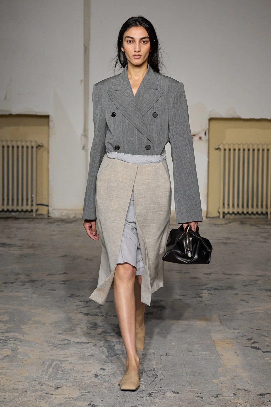 On the catwalk: lo abbiamo visto nella stagione estiva, ma continueremo ad indossarlo anche nel prossimo autunno. Lo confermano le fashion week FW24, nelle quali il grigio in ogni sua sfumatura ha avuto un ruolo da protagonista, comparendo nelle collezioni di Jil Sander, Miu Miu, Ferrari, Missoni, Philosophy di Lorenzo Serafini, Tom Ford, MaxMara, Michael Kors e molti altri brand. Bellissimi e tutti da copiare i look di Carven con sovrapposizioni di tonalità diverse di grigio.