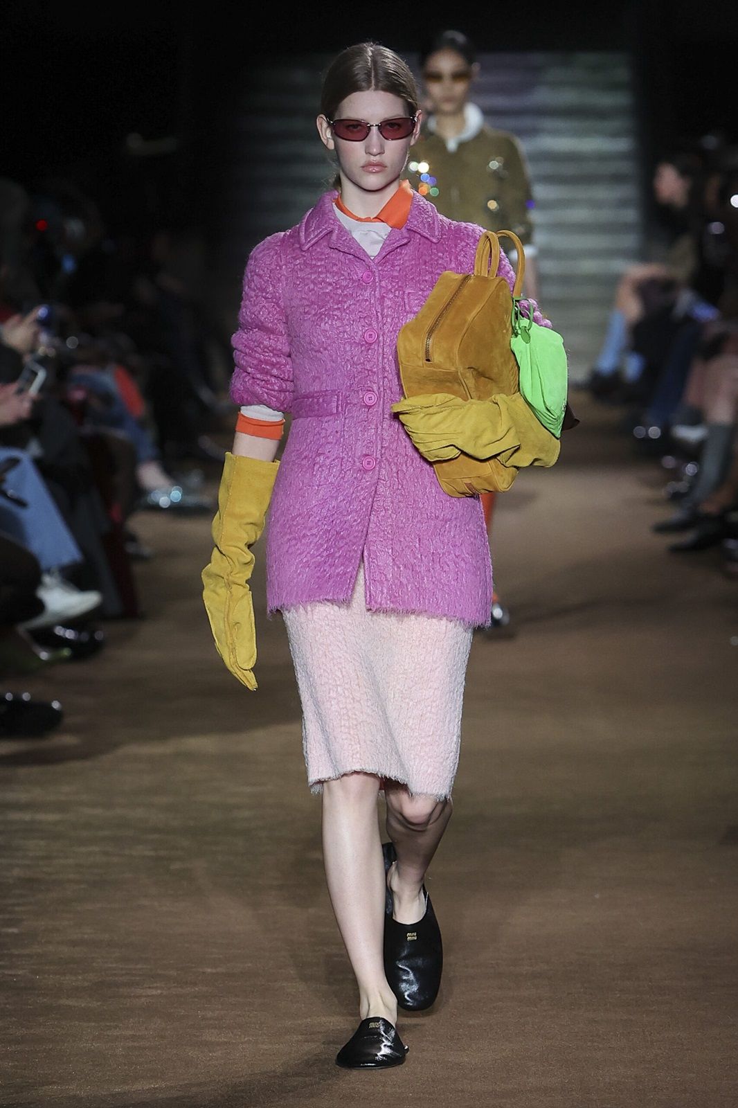 On the catwalk: non solo grigio, marrone o beige, i brand hanno deciso di dare un twist ai loro look “spezzando” la monocromia con accenti di colori pastello, golosi quasi come sorbetti. Lo abbiamo visto da Miu Miu, Marc Jacobs, Dries Van Noten e Philosophy di Lorenzo Serafini. Aggiungete alla wishlist di stagione anche pullover rosa confetto, borse verde pistacchio, minigonne menta, guanti gialli e tutto quello che la vostra fantasia vi suggerisce.