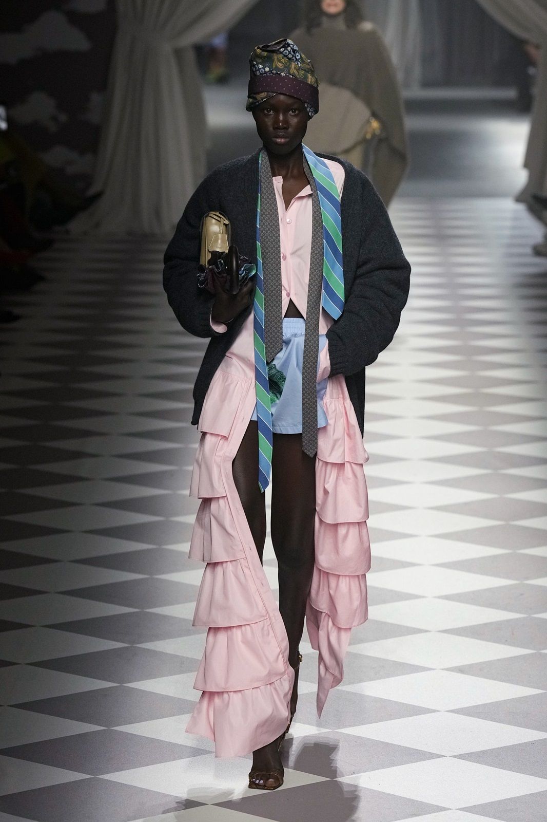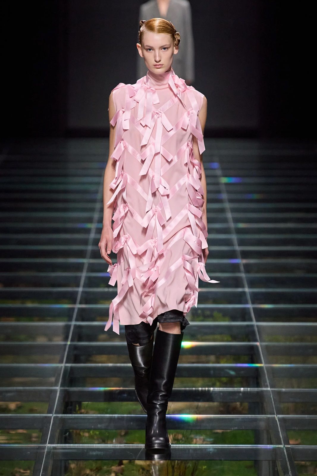 On the catwalk: come dimenticare l’abito midi ricoperto di fiocchi presentato da Prada? Il marchio ha usato la stessa tonalità, ma anche alcune più accese, per golfini e accessori, abbinati a item dai colori più cupi e seriosi. Si sono innamorati del rosa anche Philosophy di Lorenzo Serafini, Chloé, Chanel, Noir Kei Ninomiya, Sunnei ed altri.