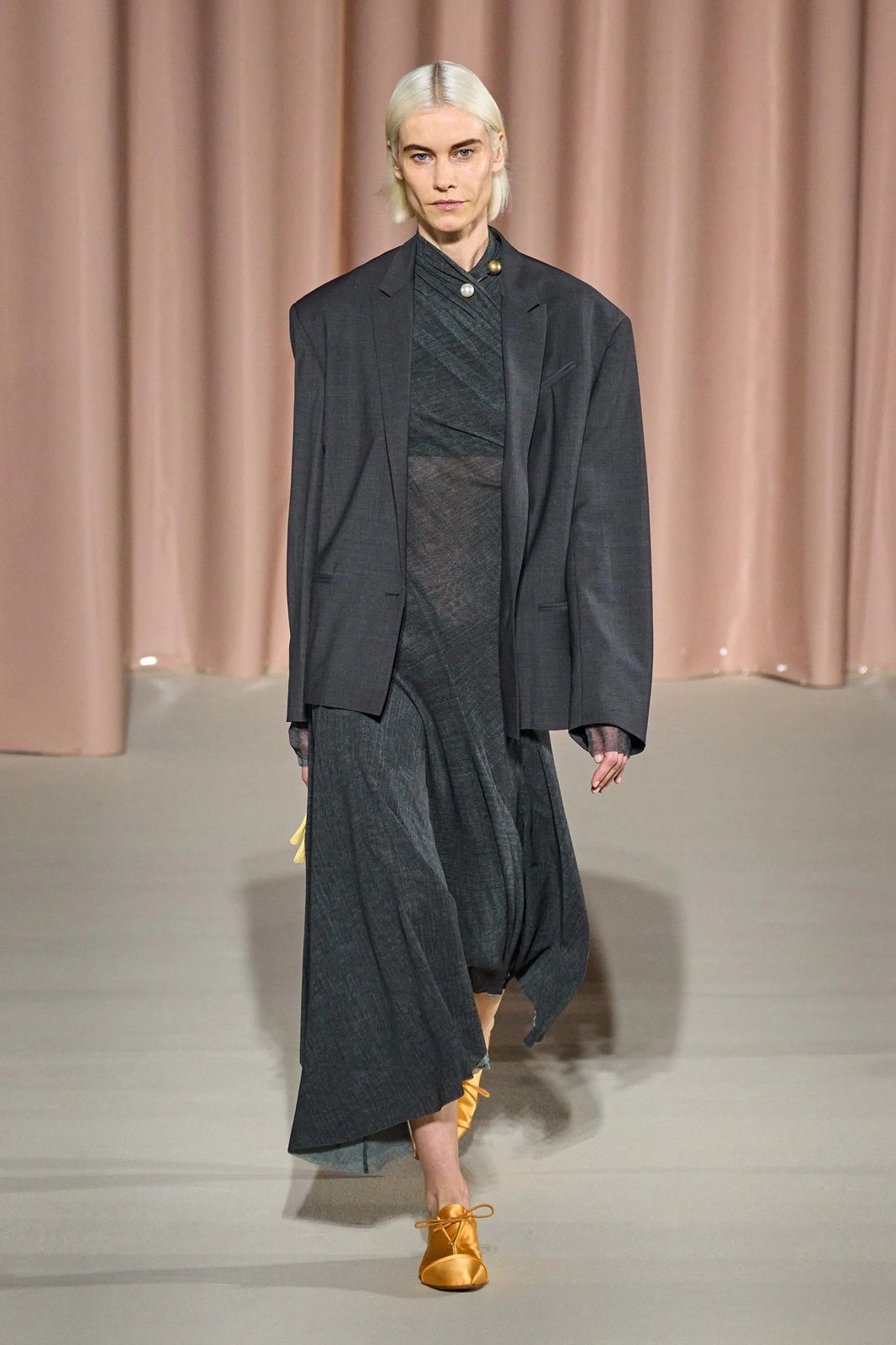 Indossalo come: Vera van Erp che sfoggia diverse sfumature di grigio, alternando maglioncini cozy in lana e rigorosi suit.
