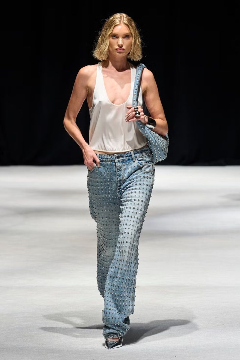 Come introdurre i jeans ricamati e sparkling nei nostri look? Come vogliamo. Contrariamente a come si possa pensare, sono un capo estremamente versatile. Possiamo smorzarne l'indole glam e catchy abbinandoli ad una semplice maglietta bianca, con sopra una giacca di pelle. Possiamo farli diventare più sofisticati con una camicia elegante, un maglione di cashmere e un blazer sartoriale. E perché non indossarli con una felpa grigia e un paio di sneakers? Chi ama il massimalismo può, invece, enfatizzarne l'allure scintillante con un top particolare e gioielli maxi, per esempio un bel paio di orecchini chandelier, proprio come Kaia Gerber in passerella. Insomma, siamo libere di giocare con il nostro guardaroba, per regalare ai jeans decorati un'identità che rispecchi il nostro mood del momento.