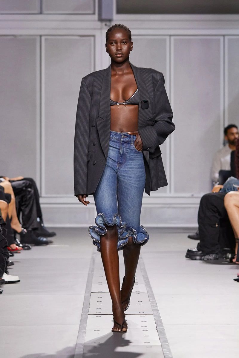 Stando alle recenti fashion week, gli stilisti voglio farci aggiungere un po' di carattere e drammaticità ai jeans che indossiamo di solito. Ricordate Kaia Gerber un paio di jeans ricoperti di cristalli sulla passerella FW23 di Gucci? Quell'immagine ha contagiato molti altri brand che hanno decorato con strass e ricami vari i propri jeans, cercando di elevare a fashion statement un capo spesso troppo anonimo. Tra le collezioni SS24 e SS 25 hanno spiccato le applique glitterate di Stella McCartney, accanto allo scintillio di Versace, Retrofête, Isabel Marant. L'effetto bijoux ha conquistato anche Gucci, PatBO e Chanel, che ha decorato il fondo dei suoi jeans con piccole gemme. Paillettes bling-bling anche per Coperni, mentre Brunello Cuccinelli ha preferito delle delicatissime piume. Il modello preferito dalle influencer e dalle it-girl? Quello con le frange di cristalli proposto da Munthe, ma si trovano esempi simili anche da Sandro, Self-Portrait, Maje, COS e molte catene low cost. Il nostro consiglio? Cercare nel vintage o fare un po' di diy lasciando libera la fantasia, per creare qualcosa di veramente personale.