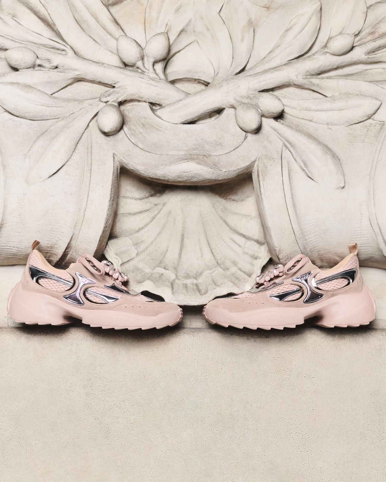 L'idea della Viv' on the Run nasce dal desiderio di rispondere alle esigenze della donna contemporanea senza mai rinunciare all'identità del lusso. Viviamo in un'epoca in cui praticità e stile non sono più elementi contrapposti, ma complementari. Volevo creare una sneaker che fosse all'altezza dell’eredità di Roger Vivier in termini di design e qualità artigianale, ma che parlasse anche il linguaggio della modernità. È un equilibrio che richiede molta riflessione, ma che ritengo fondamentale per ampliare il guardaroba della donna Vivier.