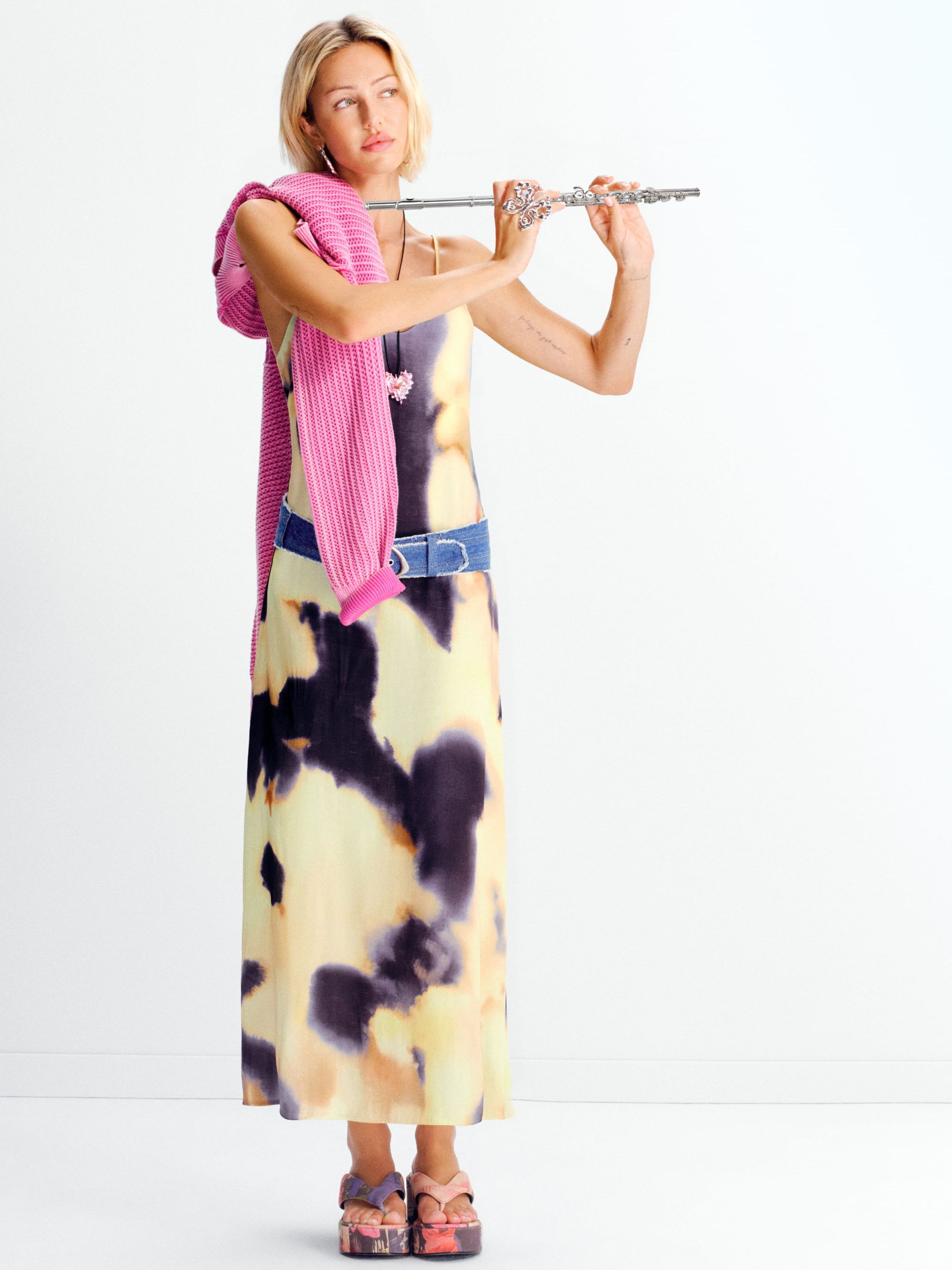 Le silhouette propongono un guardaroba versatile e dinamico, pensato per seguire il ritmo della vita quotidiana. Abiti e gonne midi emergono come pezzi chiave, conferendo fluidità e una femminilità rilassata, perfetta per la stagione estiva. Come omaggio al suo DNA, il brand reinterpreta una delle sue fantasie iconiche attraverso una lente contemporanea. La stampa viene adattata a tagli più puliti e raffinati, facilitandone l’inserimento nel guardaroba quotidiano e bilanciando l’espressività visiva con la funzionalità. Il risultato è una moda più accessibile, reale e indossabile, senza perdere l’identità creativa di Desigual.