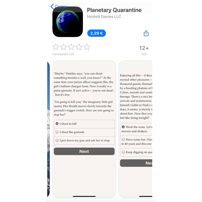 Per finire c’è Planetary Quarantine anche un gioco di ruolo un po' particolare che ci chiede di decidere chi potrà lasciare la Terra e portare la civiltà su un nuovo pianeta. Speriamo di non dover arrivare a tanto.