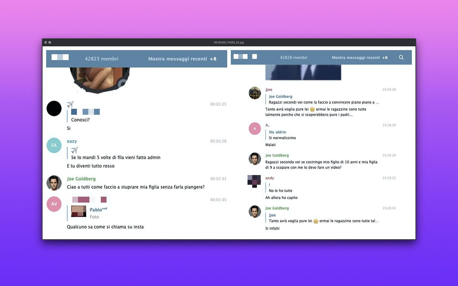 Più che altro, sembra che ancora non siamo riusciti a concettualizzare collettivamente lo stupro digitale come una forma di violenza massiva contro le donne. Il problema di parlare di ‘revenge porn’ è che fino ad oggi le persone avevano l’impressione che si trattasse di un problema ‘privato’ tra due persone, che fosse la sola vendetta di un ex ai danni di una ragazza, che magari in fondo qualche colpa ce l’aveva. Quello che questi gruppi su Telegram ci dimostrano invece è come la condivisione non consensuale di materiale intimo faccia parte di una violenza strutturale e sistematica contro le donne, frutto di una cultura ancora fortemente patriarcale e fondata sul dominio dell’uomo sul corpo delle donne.