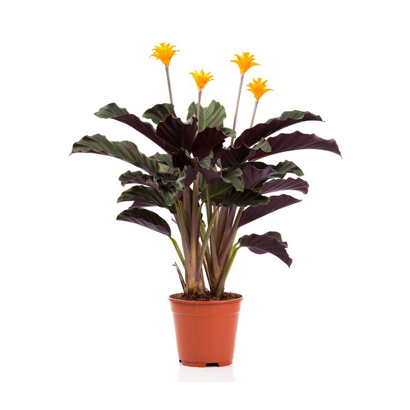 La Calathea con i suoi fiori arancioni mette subito allegria! Non è solo una pianta decorativa, ma anche purificante dell’aria, trattenendo le impurità presenti nell’ambiente e trasformandole in ossigeno. Meglio di così!