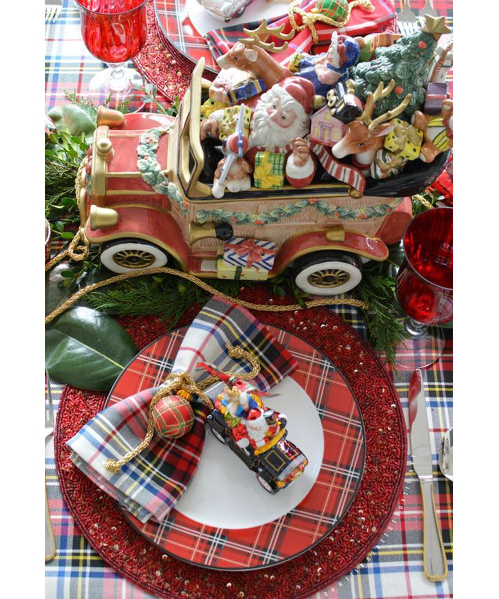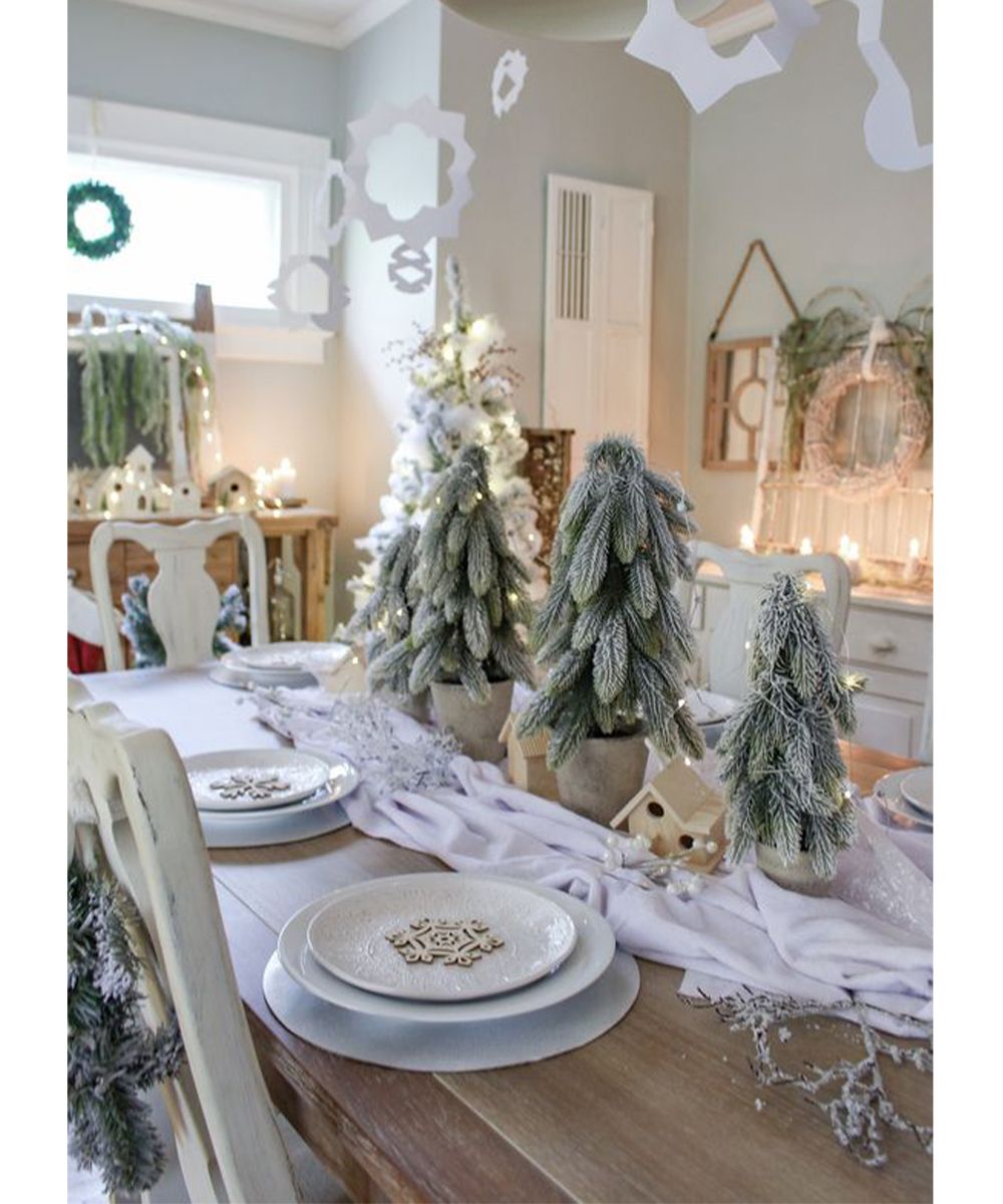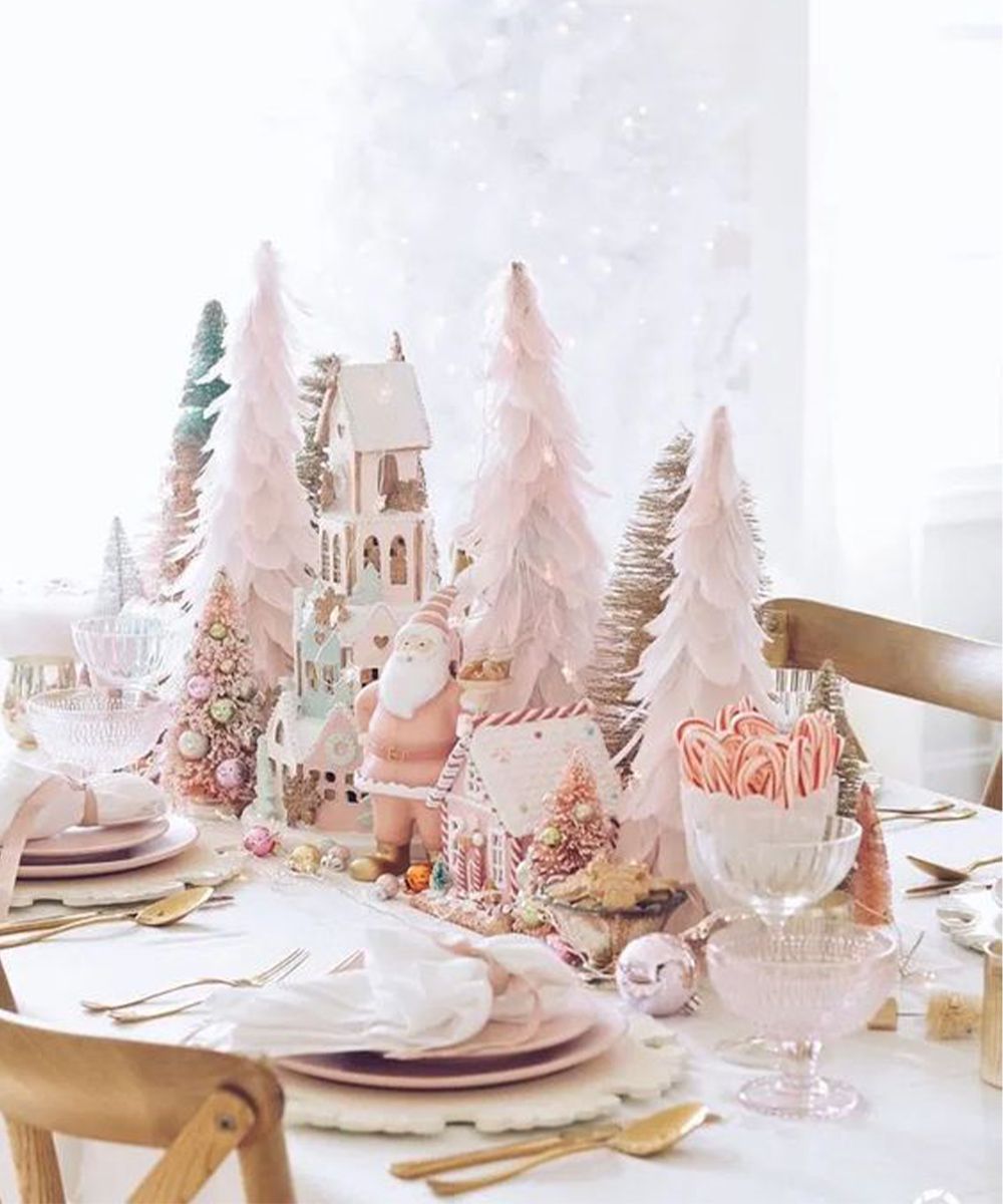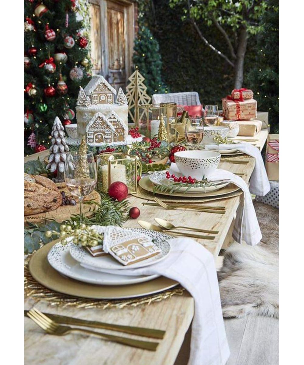 Più che a tavola, sembra di essere in nel villaggio di Babbo Natale, con renne, casette di legno e pan di zenzero, alberelli, slitte ed elfi. Un Winter Wonderland direttamente sulla vostra tavola!