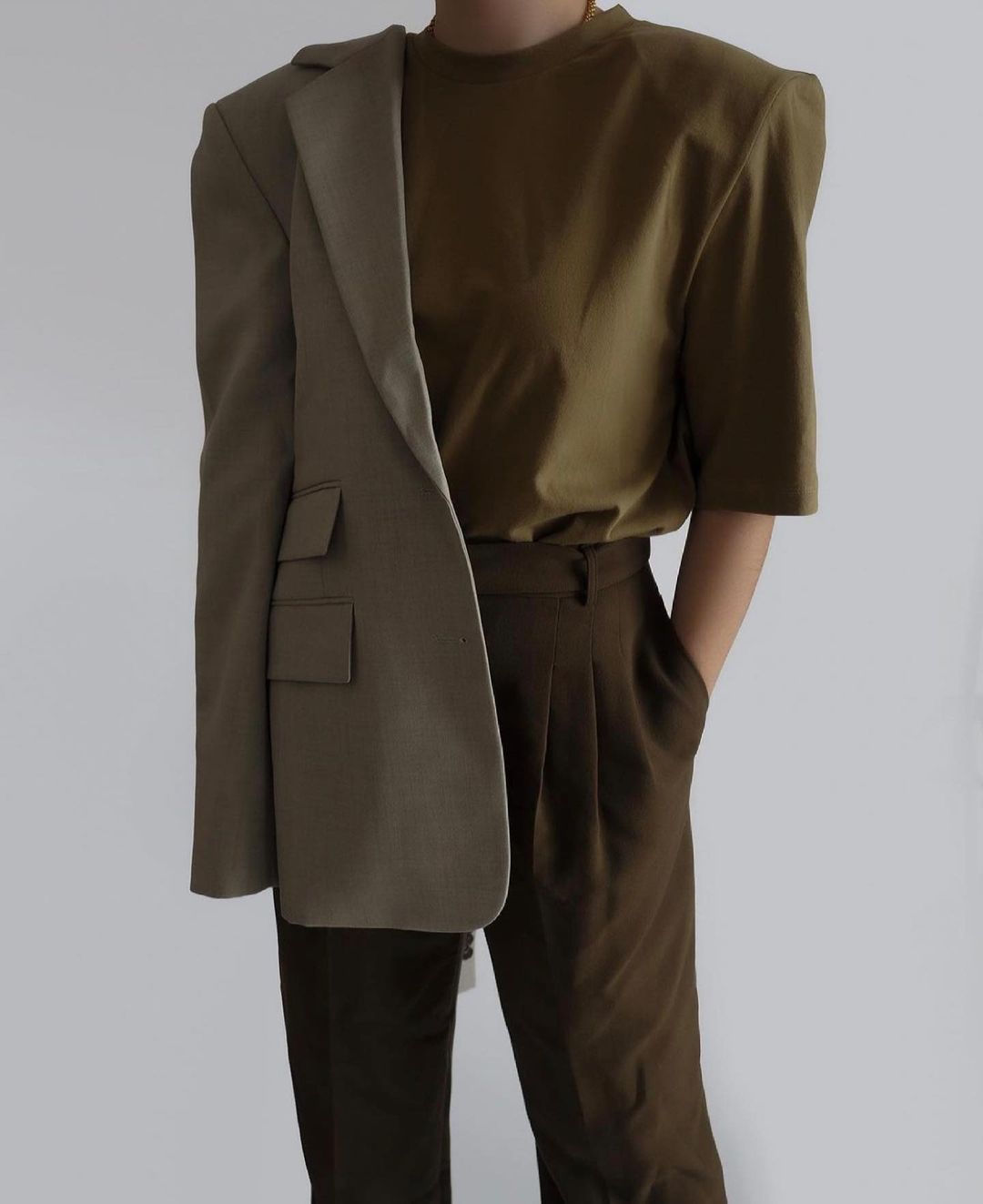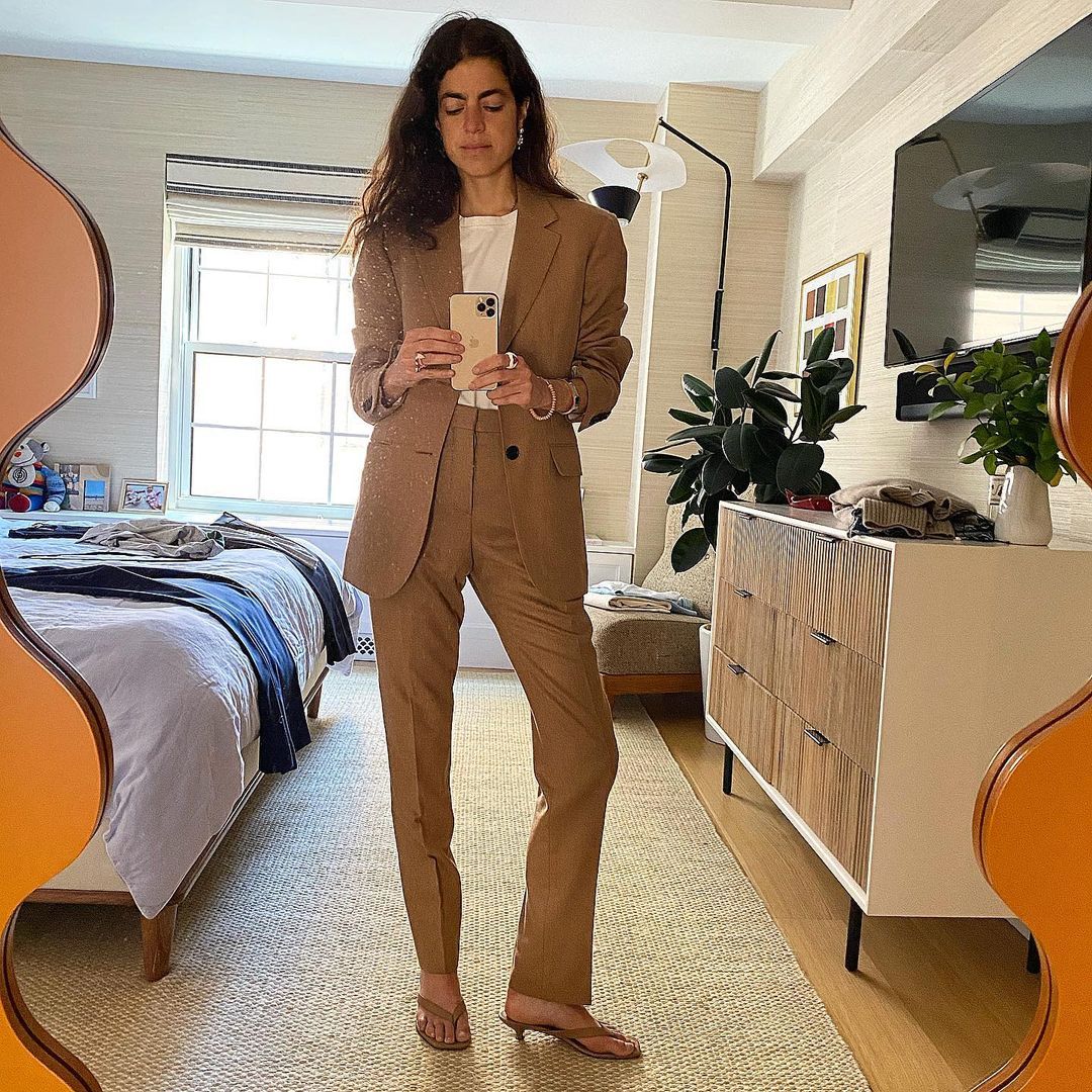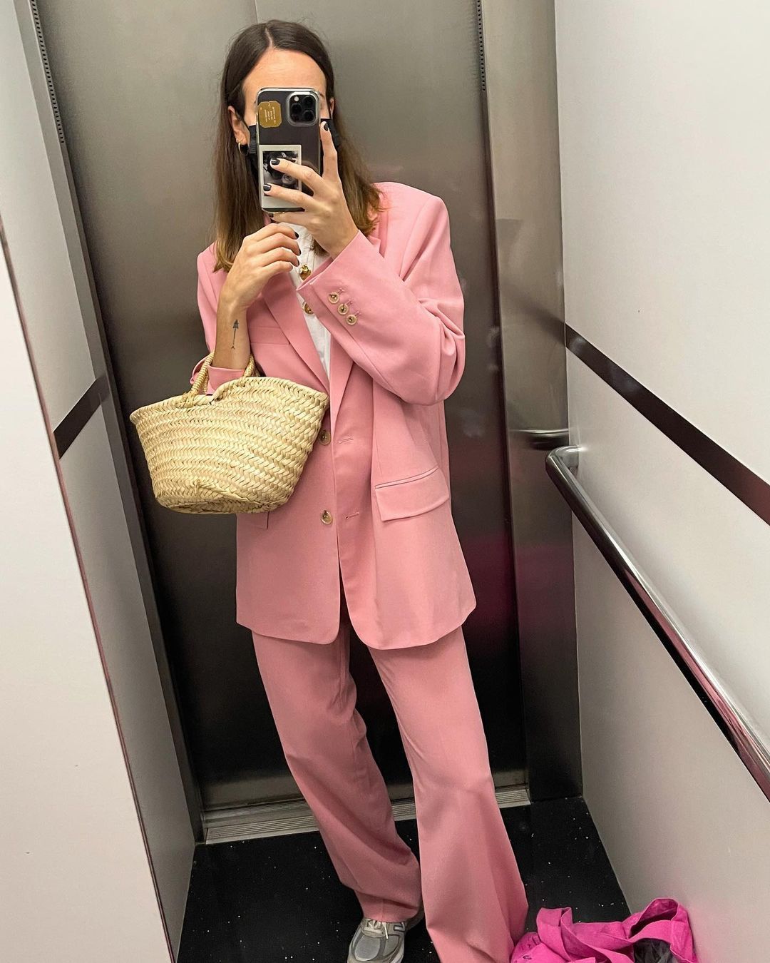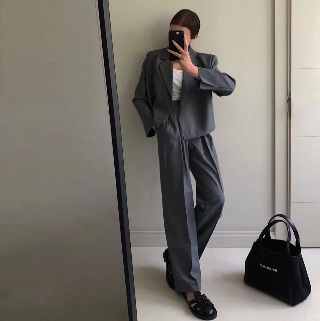 Il completo giacca-pantalone (suit) occupa un posto d'onore negli armadi di tutti i lavoratori del mondo, e offre uno spunto interessante per l'armadio lavorativo, anche femminile. A differenza del luogo comune, ha una versatilità unica in fatto di abbinamenti. Indossato spezzato, con una t-shirt boxy o un top colorato a contrasto, il completo è una garanzia, e va accessoriato in modo personale per renderlo ancor più innovativo. I due pezzi che lo compongono possono essere "spezzati" per creare outfit in cui si rimescolano le carte del guardaroba: camicette stampate, pantaloni colorati o calzature particolarmente estrose diventano gli alleati perfetti per sdrammatizzare un completo e comporre mix di outfit divertenti e easy-chic.