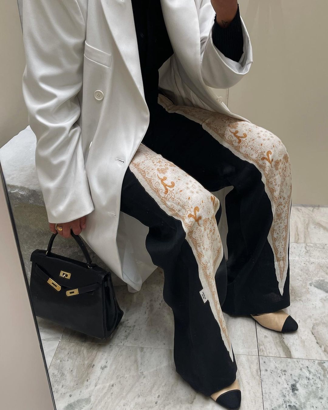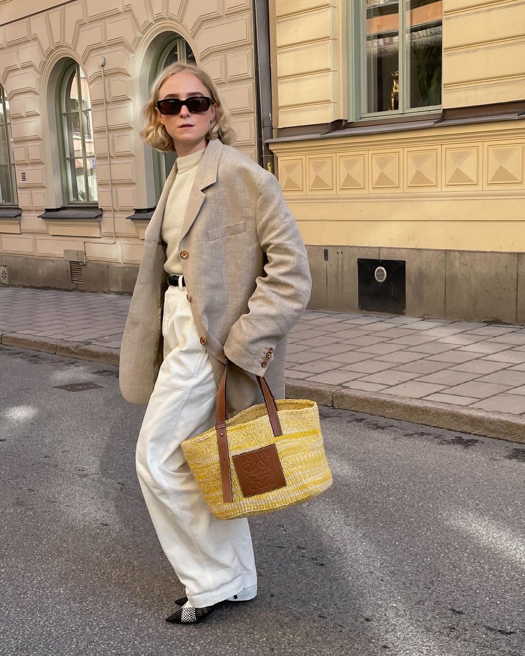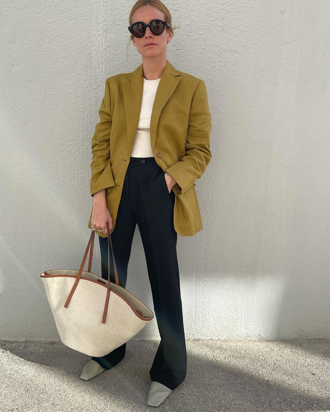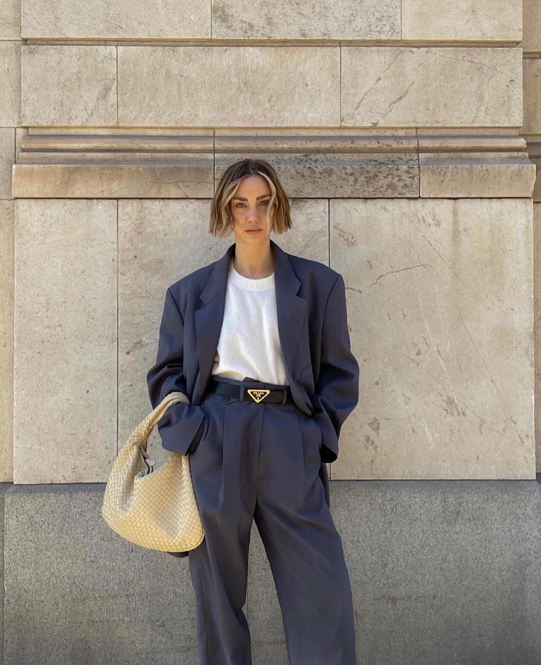 Il completo giacca-pantalone (suit) occupa un posto d'onore negli armadi di tutti i lavoratori del mondo, e offre uno spunto interessante per l'armadio lavorativo, anche femminile. A differenza del luogo comune, ha una versatilità unica in fatto di abbinamenti. Indossato spezzato, con una t-shirt boxy o un top colorato a contrasto, il completo è una garanzia, e va accessoriato in modo personale per renderlo ancor più innovativo. I due pezzi che lo compongono possono essere "spezzati" per creare outfit in cui si rimescolano le carte del guardaroba: camicette stampate, pantaloni colorati o calzature particolarmente estrose diventano gli alleati perfetti per sdrammatizzare un completo e comporre mix di outfit divertenti e easy-chic.