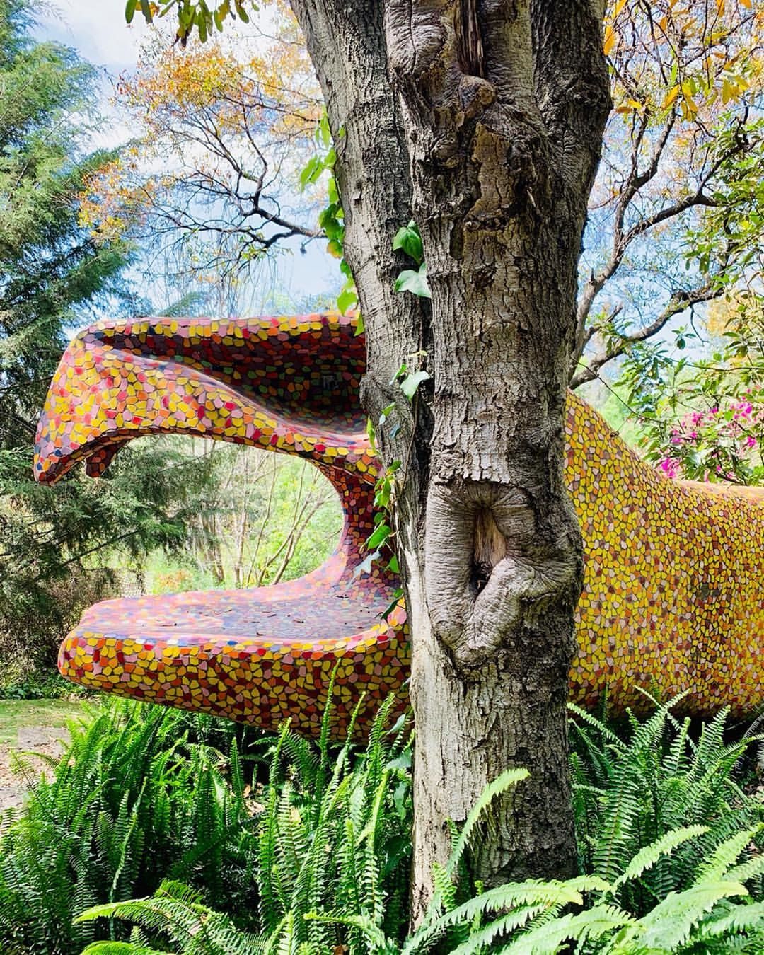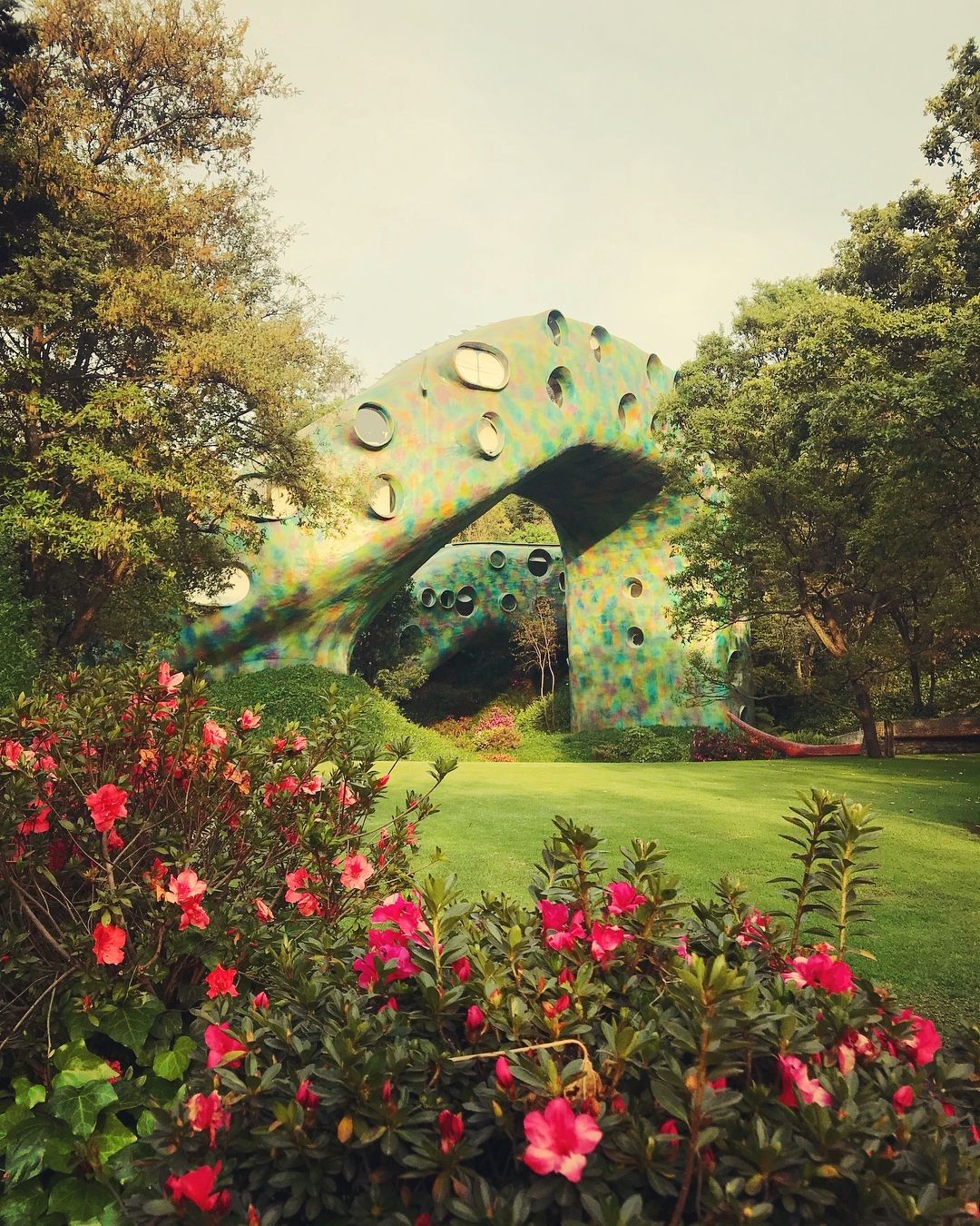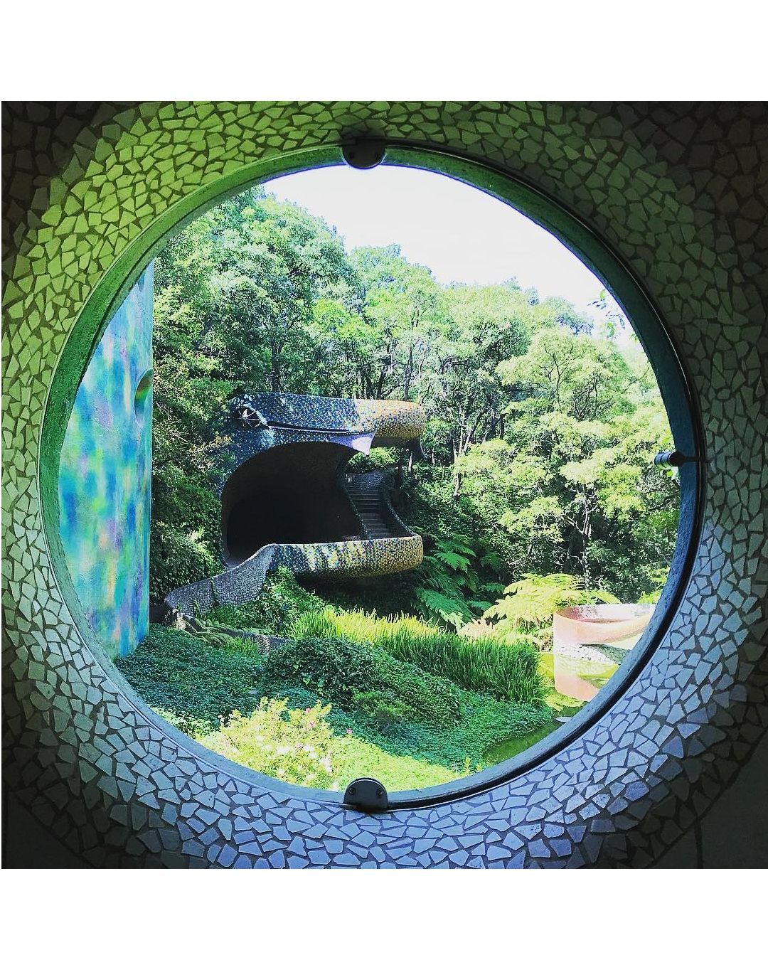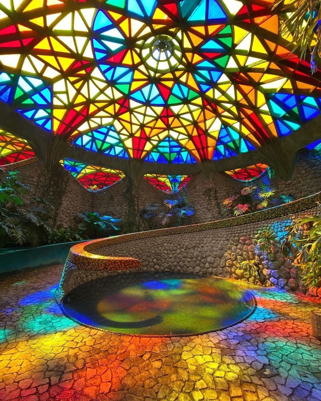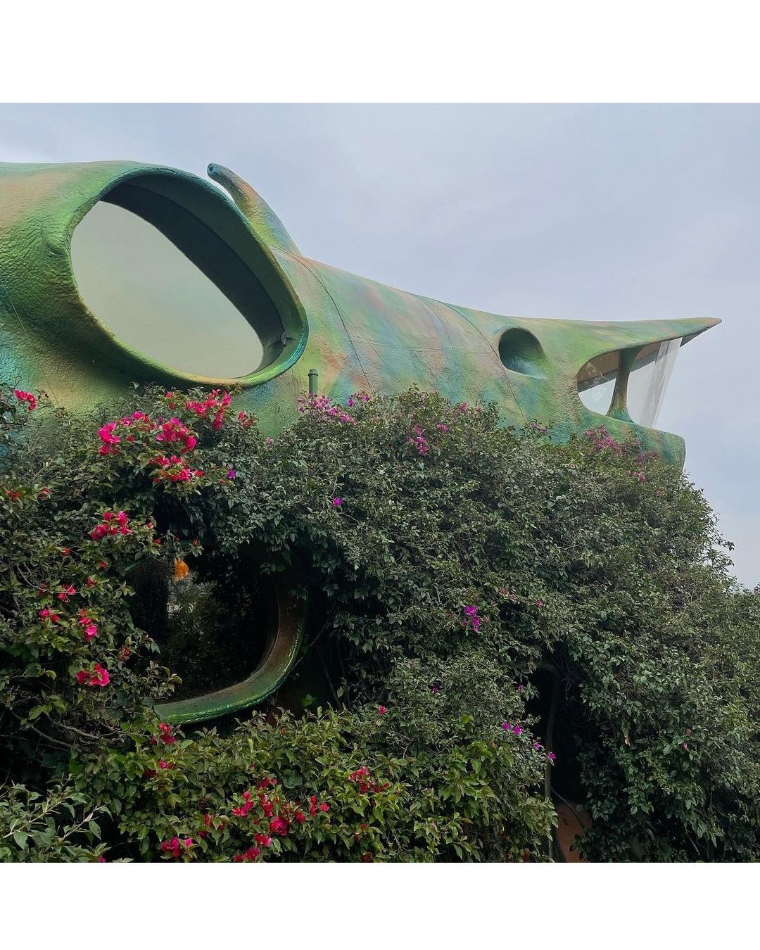 Si tratta di il Nido del Quetzalcoatl, una struttura ispirata ad una divinità mezzo uccello e mezzo serpente venerato dagli Aztechi, che occupa quasi 16 ettari sulle colline intorno a Naucalpan de Juárez, una lussureggiante area boschiva a ovest di Città del Messico. Costruita dall'architetto Javier Senosiain, la casa sembra quasi una scultura, un’opera di Gaudì, che con i suoi colori accesi trasporta i visitatori in un ambiente onirico e psichedelico. Il suggestivo edificio si aggroviglia attorno alle grotte, ruscelli, canyon e alla vegetazione proprio come farebbe un rettile e, come un vero serpente, è dotato di testa, coda e di un corpo curvo sinuoso.