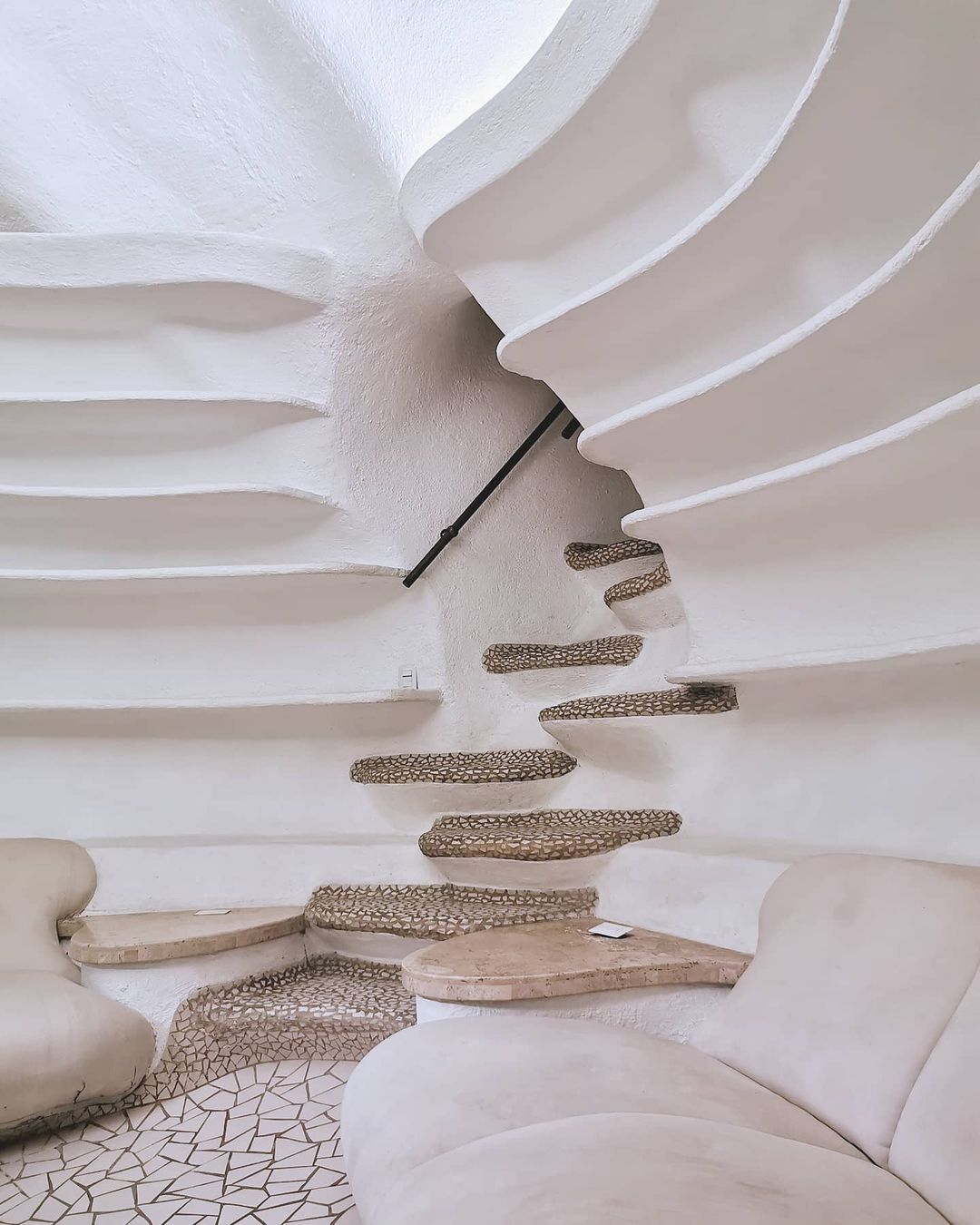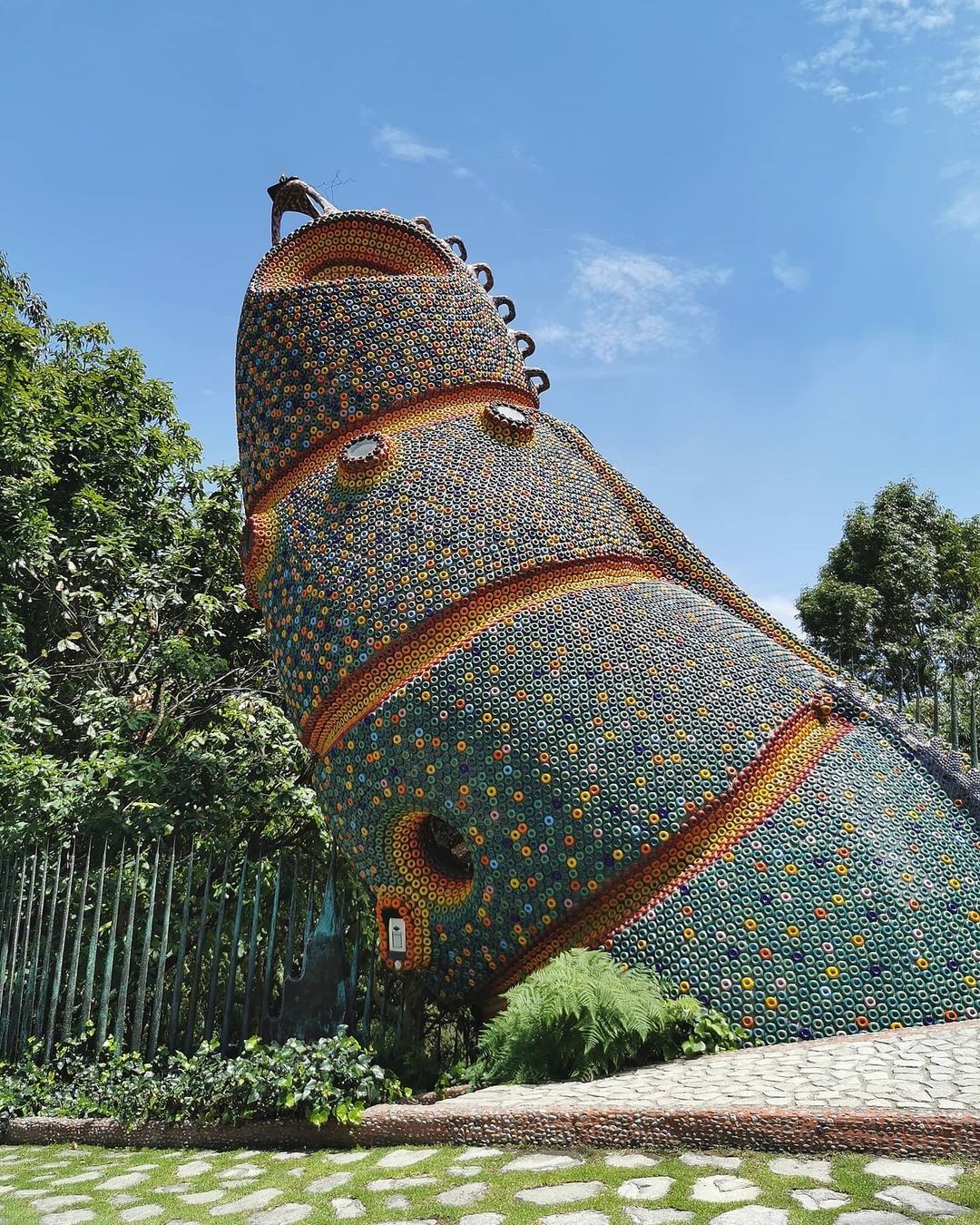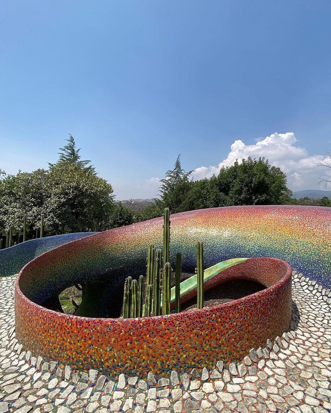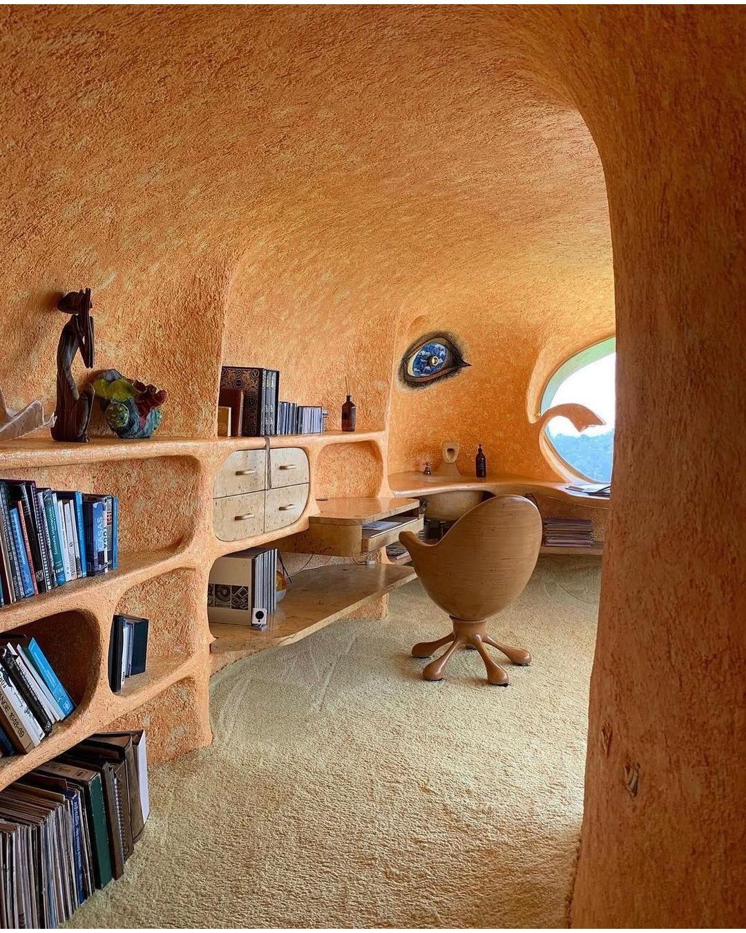 Si tratta di il Nido del Quetzalcoatl, una struttura ispirata ad una divinità mezzo uccello e mezzo serpente venerato dagli Aztechi, che occupa quasi 16 ettari sulle colline intorno a Naucalpan de Juárez, una lussureggiante area boschiva a ovest di Città del Messico. Costruita dall'architetto Javier Senosiain, la casa sembra quasi una scultura, un’opera di Gaudì, che con i suoi colori accesi trasporta i visitatori in un ambiente onirico e psichedelico. Il suggestivo edificio si aggroviglia attorno alle grotte, ruscelli, canyon e alla vegetazione proprio come farebbe un rettile e, come un vero serpente, è dotato di testa, coda e di un corpo curvo sinuoso.