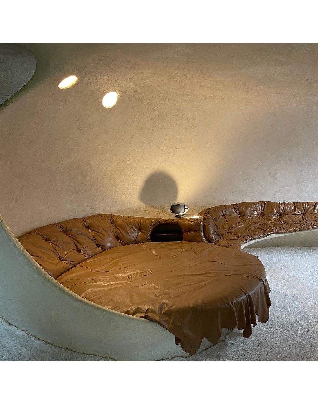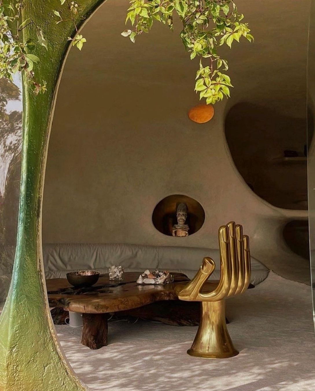 Nel suo ventre c’è un appartamento spazioso con 5 camere da letto caratterizzato da colori sobri e naturali, dettagli in legno e mobili dall’aspetto quasi primitivo.