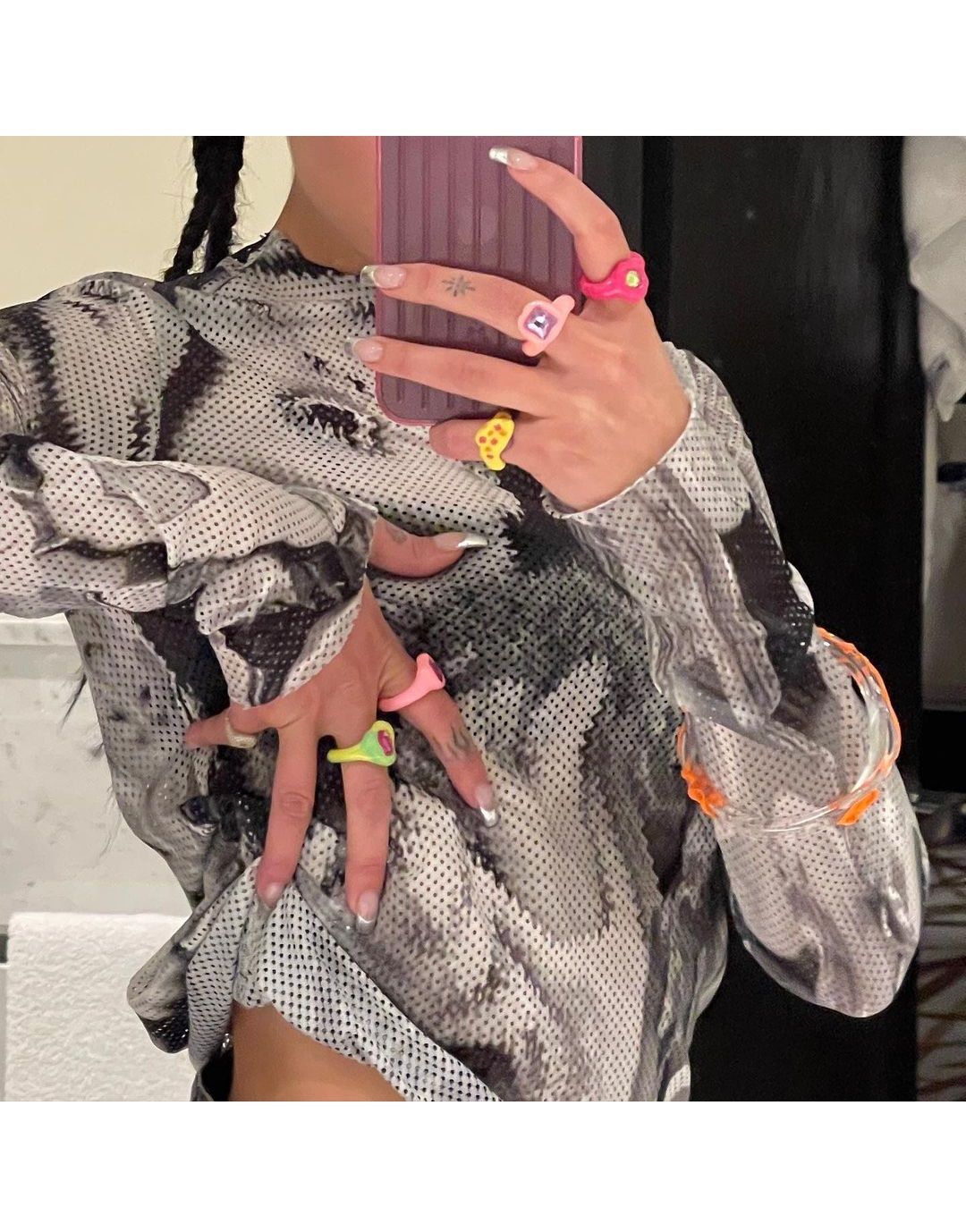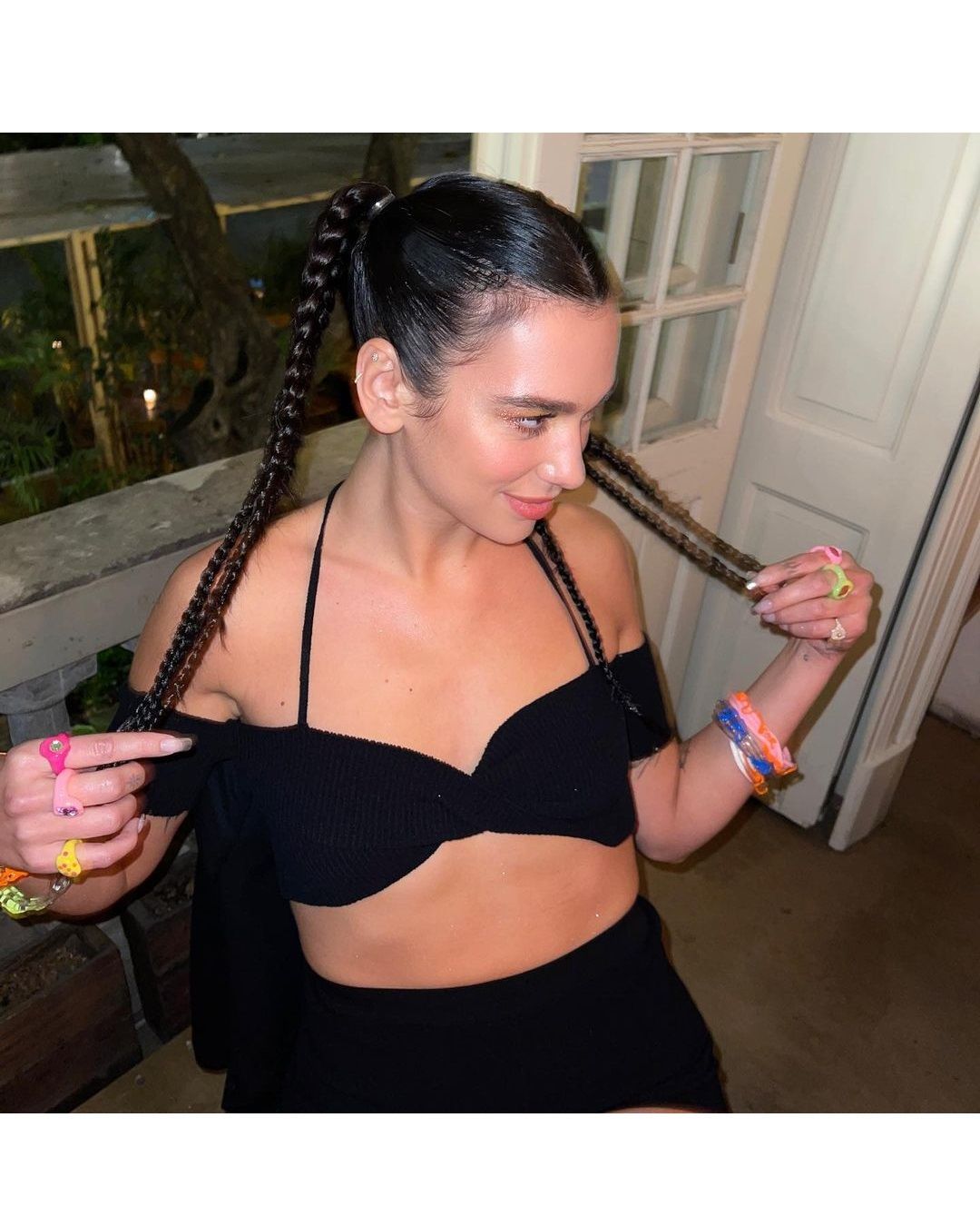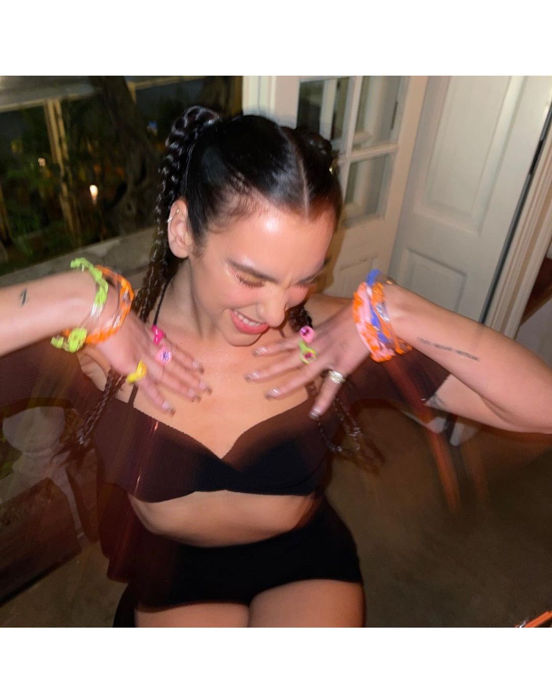 Dopo il Nido del Quetzalcoatl e una visita al Palacio de Bellas Artes, Dua ha trascorso il resto del tempo in giro per locali con le amiche. Ha indossato baby braids, micro top e una pioggia di braccialetti e anelli pop in resina creati da Blobb il brand di Sofía Hellyes per cenare da Máximo Bistrot ed assaggiare i piatti, come la brioche con il riccio dello chef Eduardo García. Il tempo di cambiare outfit e sfoggiare le pumps di Amina Muaddi per andare a bere tequila e mescal da Hanky Panky, uno dei primi bar in cui è tornati il trend speakeasy in CDMX.