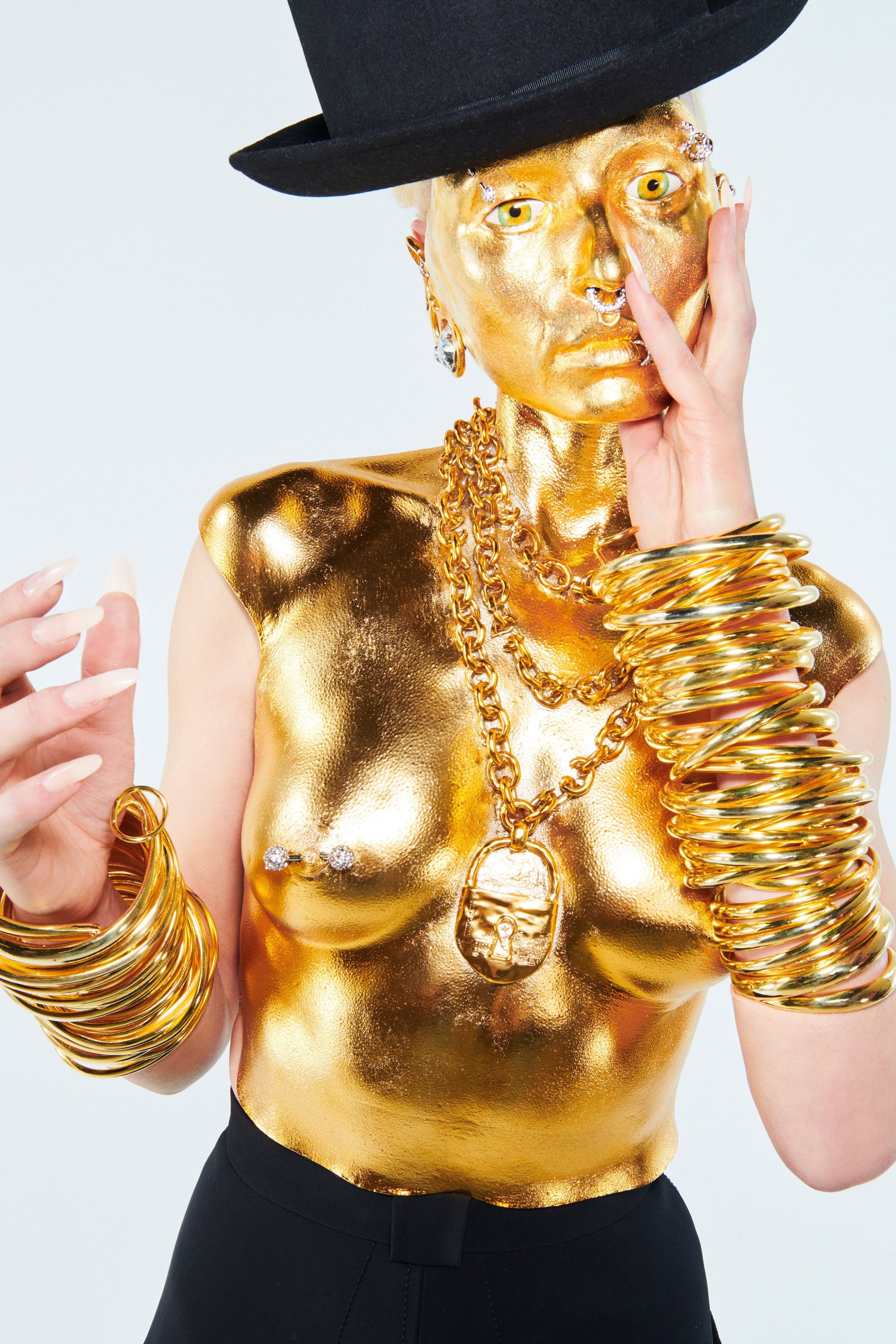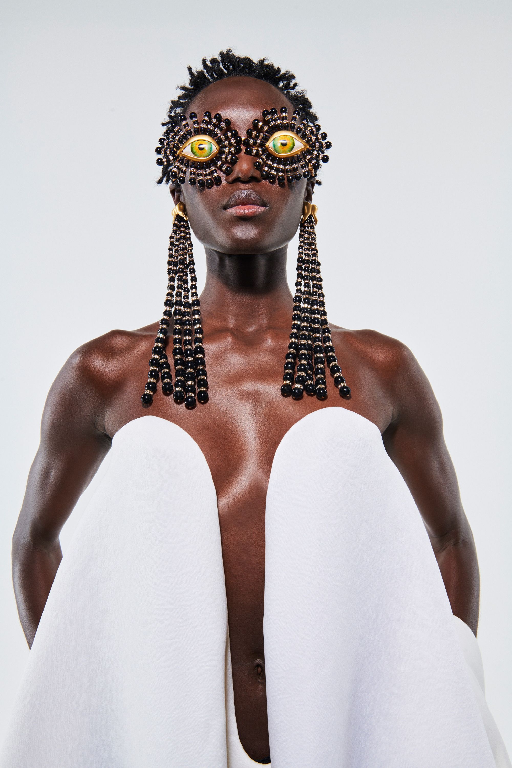 L’intesa artistica e personale fra Elsa Schiaparelli e Salvador Dalì ritorna nella collezione bijoux prét-a-porter Spring/Summer 2021 by Daniel Roseberry, Body Parts Jewelry. I pezzi sono audaci, visionari, esuberanti ed extra, proprio come le immagini riprodotte dagli esponenti della corrente surrealista, e ispirati alle parti del corpo: orecchini a forma di capezzolo, file di denti usate come collane e occhiali in cui sono disegnati gli occhi sulle lenti, per un effetto trompe l’oeil, ditali che simulano lunghe dita dorate e altri bizzarri accessori, come una mascherina che trasforma la parte inferiore del viso in una scultura ieratica. C’è infine il famoso Eye of Cocteau, simbolo surrealista creato dall’artista Jean Cocteau per Schiaparelli nel 1937 e in seguito ripreso da Dalì che, con il titolo Eye of Time, diede vita a una spilla in platino e diamanti, sulla quale le lancette dell’orologio segnano un’ora imprecisata sospesa nel tempo.