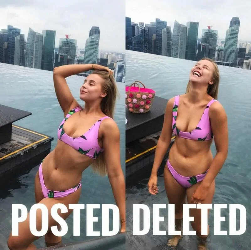 Nel tentativo di sensibilizzare sulla natura ingannevole dei social media, c'è stato un aumento dei post Internet vs reality, diffusi esponenzialmente sia su Instagram che su Tiktok: foto affiancate di un'immagine in posa o modificata rispetto alla versione reale che mostra "inestetismi" comuni alla maggior parte della popolazione come cellulite, rotolini di pancia e smagliature.