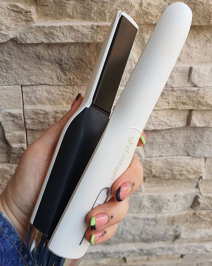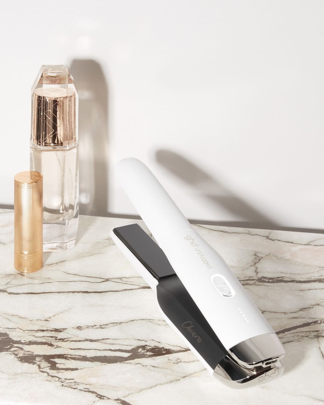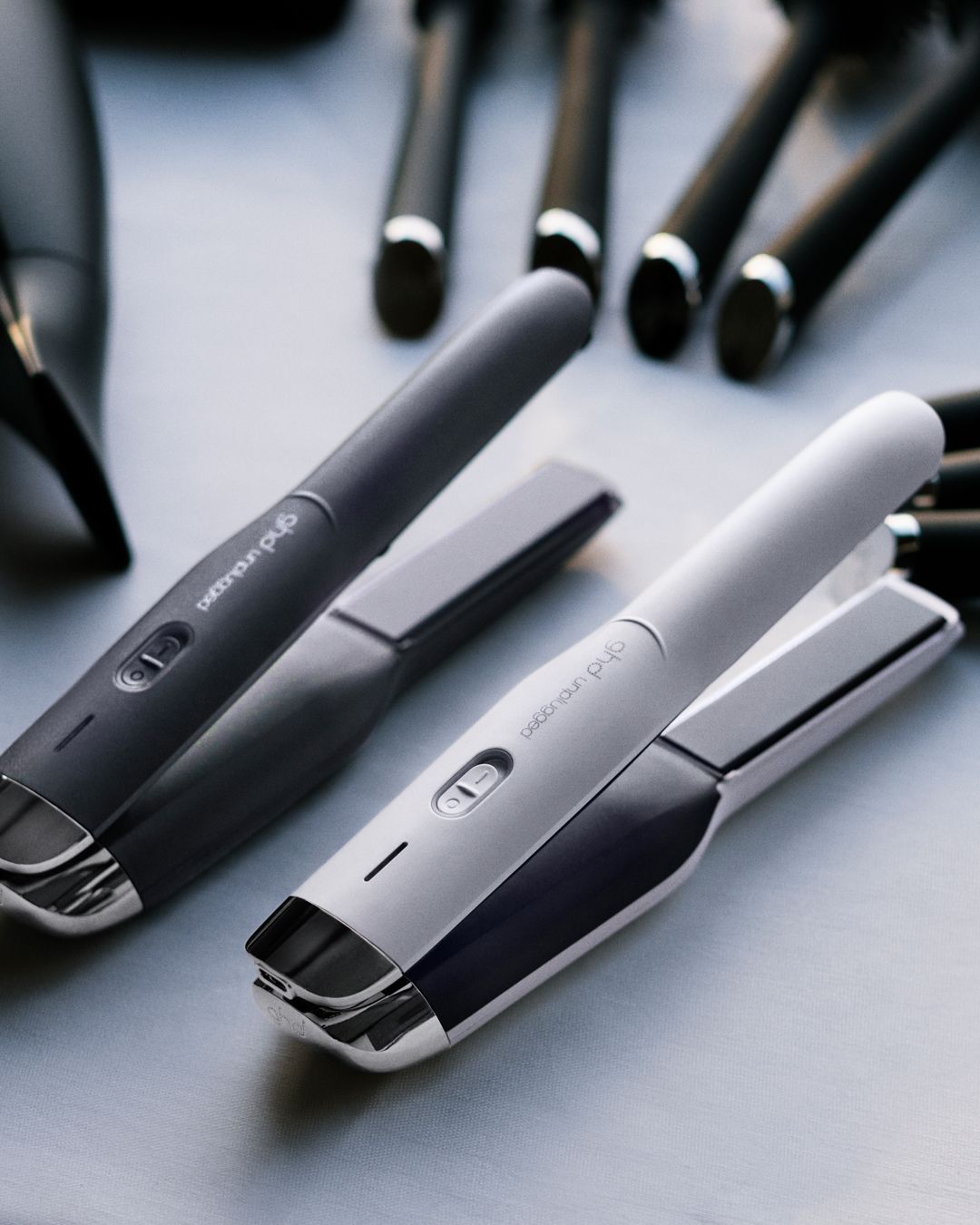 La piastra più amata dai professionisti (e non solo) arriva in versione wireless, perfetta per essere portata in viaggio e utilizzata ovunque. La nuova GHD Unplugged é leggera e compatta e ideale per uno styling on-the-go. Assicura fino a 20 minuti di styling continuo in autonomia e regala, come tutti gli styler GHD, un boost di brillantezza e morbidezza al capello, rendendo questo tool adatto all’uso personale - da usare in palestra, in viaggio, all’aperto - ma anche all’uso professionale: veloci ritocchi prima di un red carpet o di un matrimonio o per un cambio di look day-to-night. Come altri styler GHD, la piastra Unplugged mantiene una temperatura ottimale di 185°C su entrambe le lamelle ed é munita di un cavo ricarica USB-C. La batteria si carica completamente in circa 2 ore.