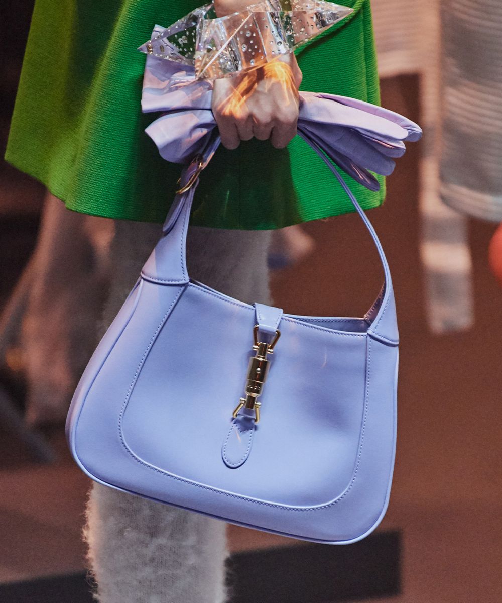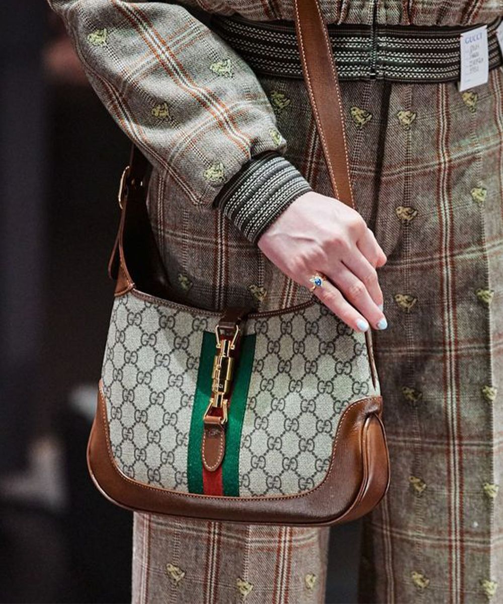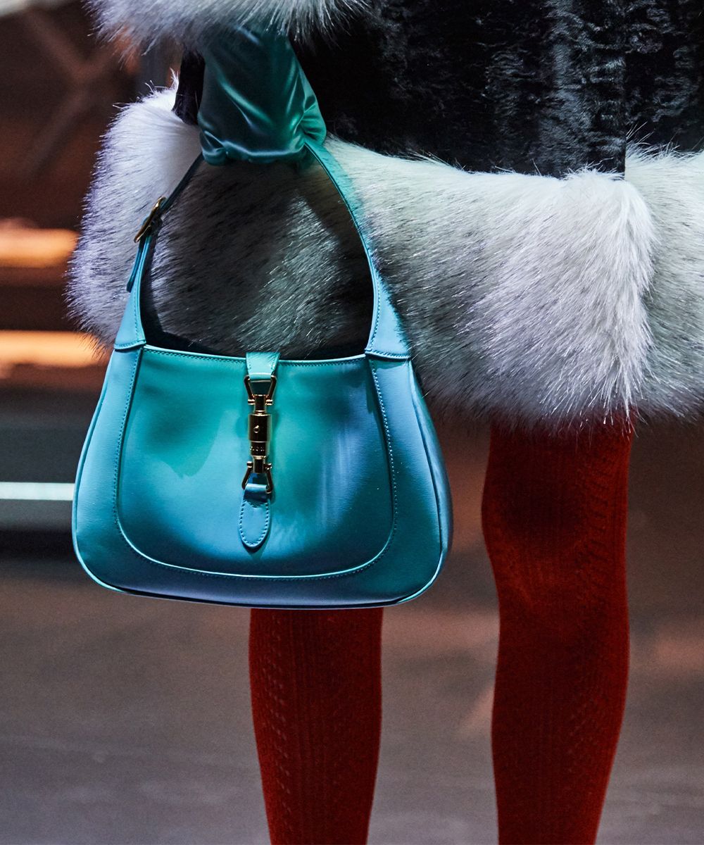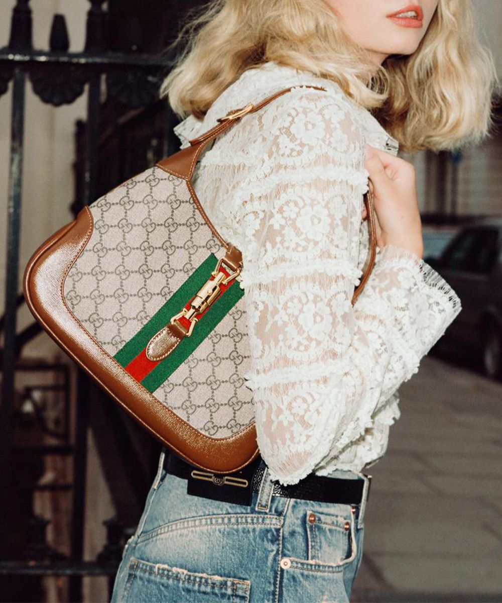 Concepita nel 1961 con il nome di G1244, la borsa hobo a forma di mezzaluna venne introdotta a casa Gucci come un pezzo unisex, divenendo ben presto un successo tra il pubblico di connoisseurs del marchio. Quando Jackie Kennedy, first lady più affascinante d’America, fu avvistata più volte con il modello sottobraccio, la popolarità della borsa aumentò a tal punto che l’azienda di moda decise di rinominare l’accessorio in suo onore. La Jackie di Gucci è oggi tra i modelli più iconici della Maison, soprattutto dopo la rivisitazione da parte dell’attuale direttore creativo Alessandro Michele, che ha riportato in vita il pezzo d'archivio a partire dalla collezione Fall/Winter 2020. Da allora, la Jackie 1961 è tornata a far parlare di sé, grazie anche alle diverse iterazioni mini, piccole e medie e alle nuove colorazioni pop.