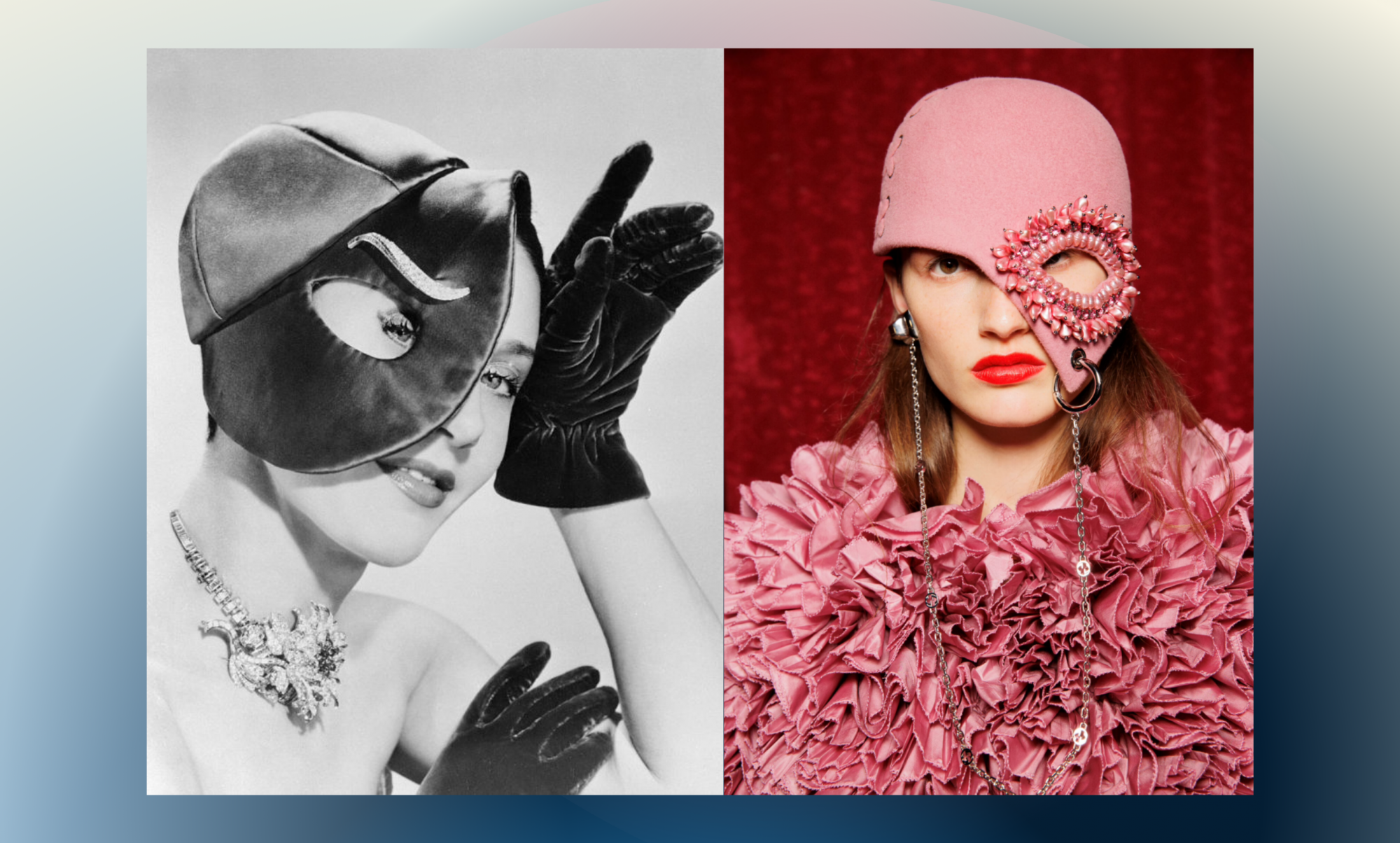 Inoltre gli accessori visti a Los Angeles non si fermano qui e, dopo le maschere bondage, troviamo anche il Peek-a-boo Hat di Elsa Schiaparelli, di cui forse non si coglie immediatamente il simbolismo sessuale, ma per recuperare la reference basterebbe leggere un vecchio articolo francese sulla rivista surrealista Minotaure (D’un certain automatisme du goût, 1933) di Tristan Tzara, uno dei fondatori del movimento Dada.