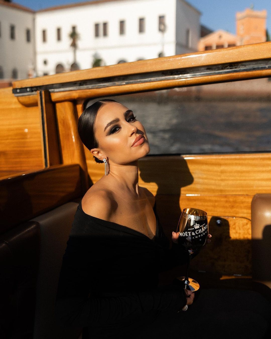 Venezia durante la Mostra del cinema è incredibilmente tranquilla. Sarà che è una città che ti fa perdere, con andamento lento, pensando di svoltare e trovare un ponte e invece no, trovi l'ennesimo canale. Abbiamo incontrato Clotilde Esposito e il tempo è sembrato rallentare. Mentre al Lido tutti corrono tra un photocall e l'altro, un'intervista e l'altra, una sessione di trucco e una prova d'abito, lei riesce a godersi il momento, il luogo, lo spazio; la fortuna di essere in una delle città più magiche al mondo a uno dei festival cinematografici più ambiti al mondo. L'abbiamo incontrata su un'isola felice, l'Isola delle Rose, lontano dai flash e dal caos del Lido, a poche ore dal red carpet di "Maestro" di Bradley Cooper su cui è stata ospite di Moët: una regina dark dal fascino magnetico. «Sono emozionatissima. Allo stesso tempo però non vedo l'ora di essere lì, di godermi quel momento appieno. Seguo la Mostra del cinema di Venezia e la Biennale in generale da anni. Quindi essere qui è veramente un sogno.»