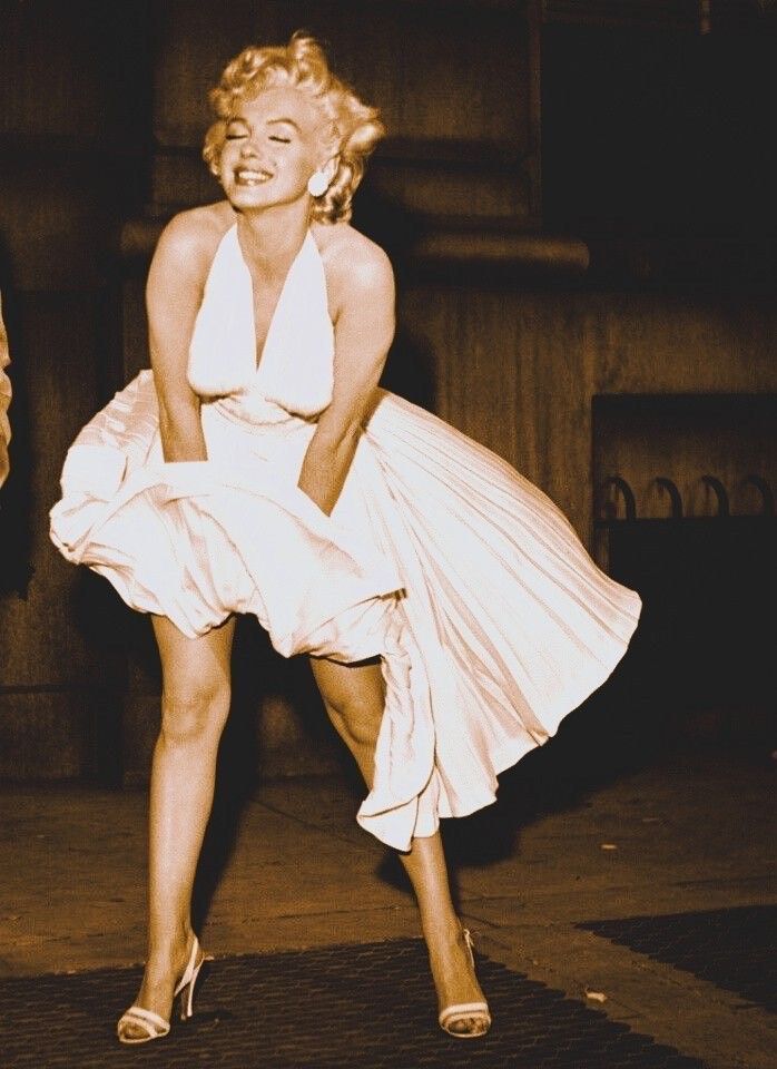 Sfuggente e svolazzante sopra una grata della metropolitana il vestito bianco di seta di Marilyn Monroe, disegnato da William Travilla per il film "Quando la moglie è in vacanza", ha fatto la storia. Nell'adattamento cinematografico di Billy Wilder del dramma di George Axelrod, la narrazione si concentra su un uomo che, dopo la partenza della sua famiglia per una vacanza estiva, inizia a fantasticare sulla sua affascinante vicina, chiamata La Ragazza e interpretata proprio da Marilyn Monroe. La protagonista, dunque, è il soggetto delle fantasie maschili, ed è anche il motivo principale per cui si guarda la pellicola. Vulture ha dichiarato che l'attrice è "un raggio di sole che taglia la nebbia del film".