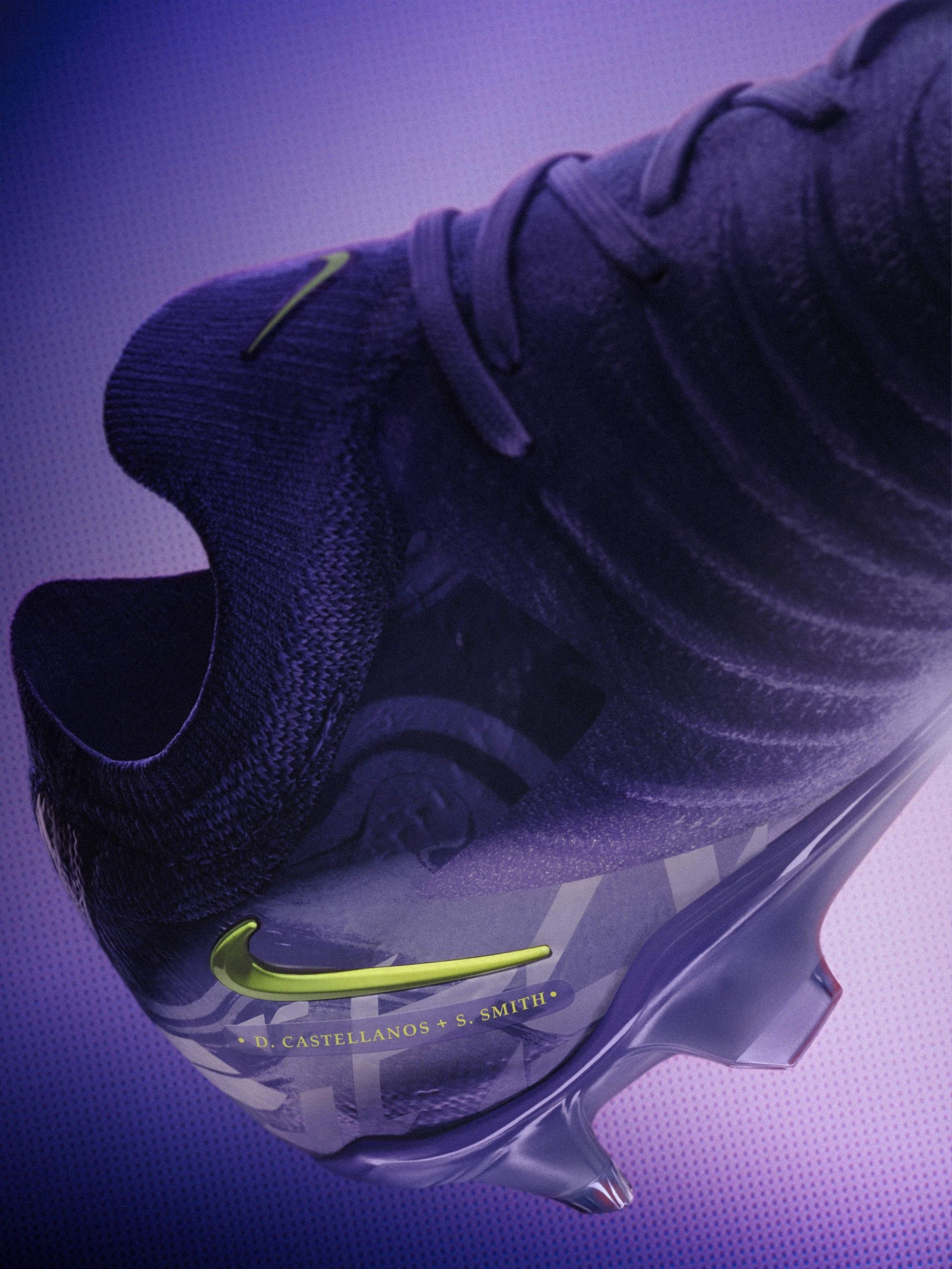 "Quello che mi piace di più di questa scarpa è che è stata creata con sei giocatrici provenienti da diversi contesti e che giocano in squadre diverse, ma ci siamo unite per creare qualcosa di speciale che possiamo condividere con il mondo" dice Sophia. Oltre a performance di altissimo livello, la Nike United pack spinge al massimo i limiti dello stile in campo, con un design audace che celebra ogni membro del collettivo e l'intera comunità del calcio femminile. "Far parte di questo movimento e fare in modo che il calcio femminile venga rispettato è emozionante" afferma Naomi. "Quando avremo finito, sarà ancora meglio per la prossima generazione." Una colorazione Viola e Volt rappresenta potenza e ambizione, facendo anche un cenno al DNA di Nike e alla sua lunga ricerca di innovazione in campo. Il pattern della tomaia di ogni scarpa è ispirato al vetro rotto, simbolo di una nuova generazione di atleti che sta sfondando per entrare nell'era successiva del calcio. I nomi delle singole atlete compaiono accanto al logo Nike United sulla parte posteriore della scarpa, e una soletta personalizzata rende omaggio a tutti i membri del collettivo. "Sentirsi forti con le proprie scarpe fa la differenza quando si scende in campo" dice Salma. "A me piacciono i colori vivaci e audaci, ed è passato un po' di tempo da quando ho visto un colore come questo."