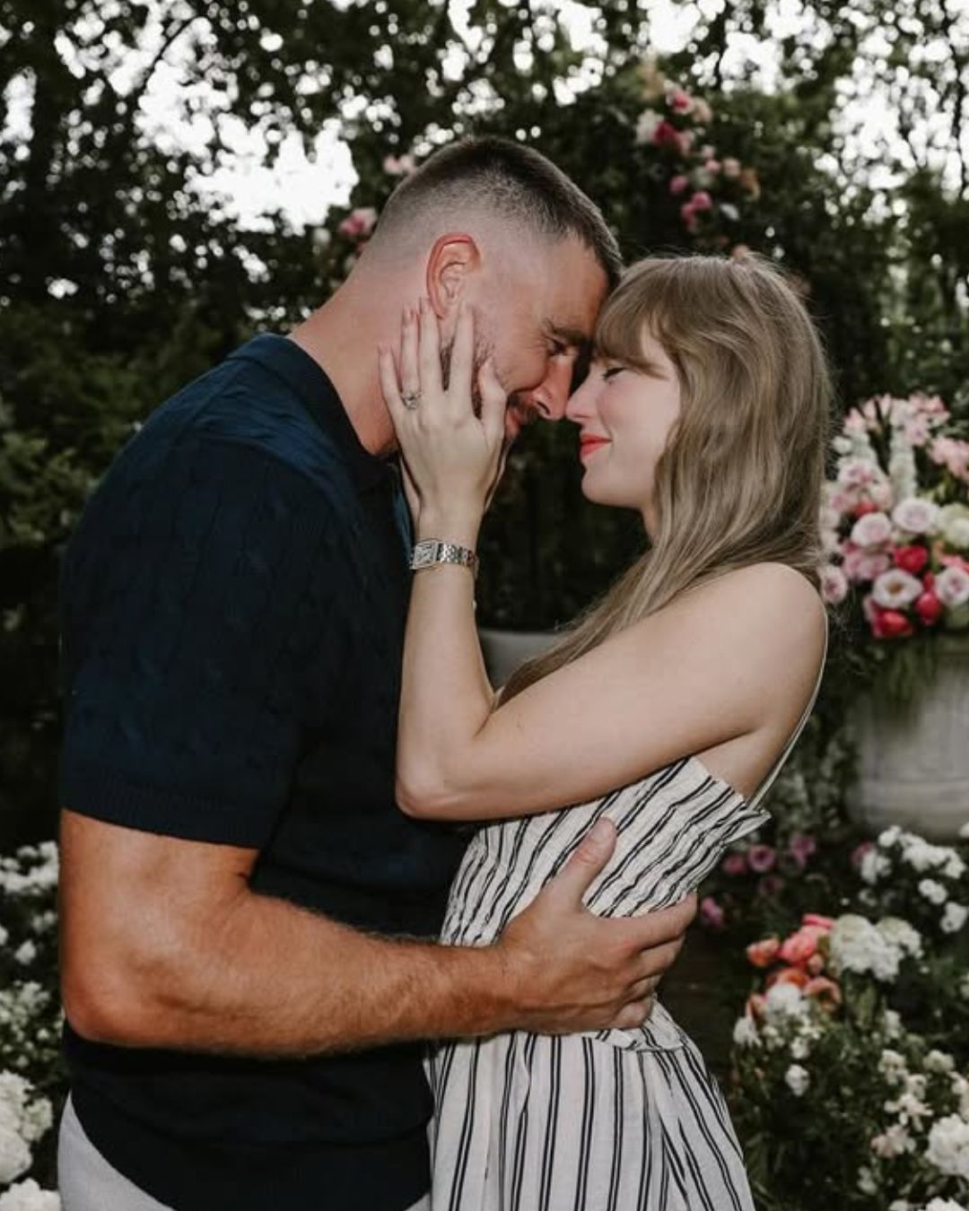 Taylor Swift si sposa. Se non lo sapete, forse, state ultimando le vostre vacanze estive nelle profondità dell'oceano o sul cocuzzolo di una montagna su cui internet tragicamente non arriva, o forse le vostre bolle non apprezzano la star più statunitense che ci sia, al secondo posto solo dopo Dolly Parton, tanto da essere riuscite a escluderla dal flusso di post in arrivo. In tal caso, vorremmo sapere come ci sono riuscite. Al resto degli esseri umani, la notizia è giunta su Instagram con un post in collaborazione tra lei e il fidanzato, il giocatore di football americano Travis Kelce, che sui social è conosciuto come "killatrav". Nelle foto vediamo la cantante di Love Story e il fidanzato immersi in quello che sembra un meraviglioso giardino fiorito invaso di rosa, di bianco e di verde. Lui in ginocchio, un bacio, un abbraccio, uno scatto sull'anello, che ha una pietra importante (cioè enorme) e che sembra essere vintage, di oro giallo.
