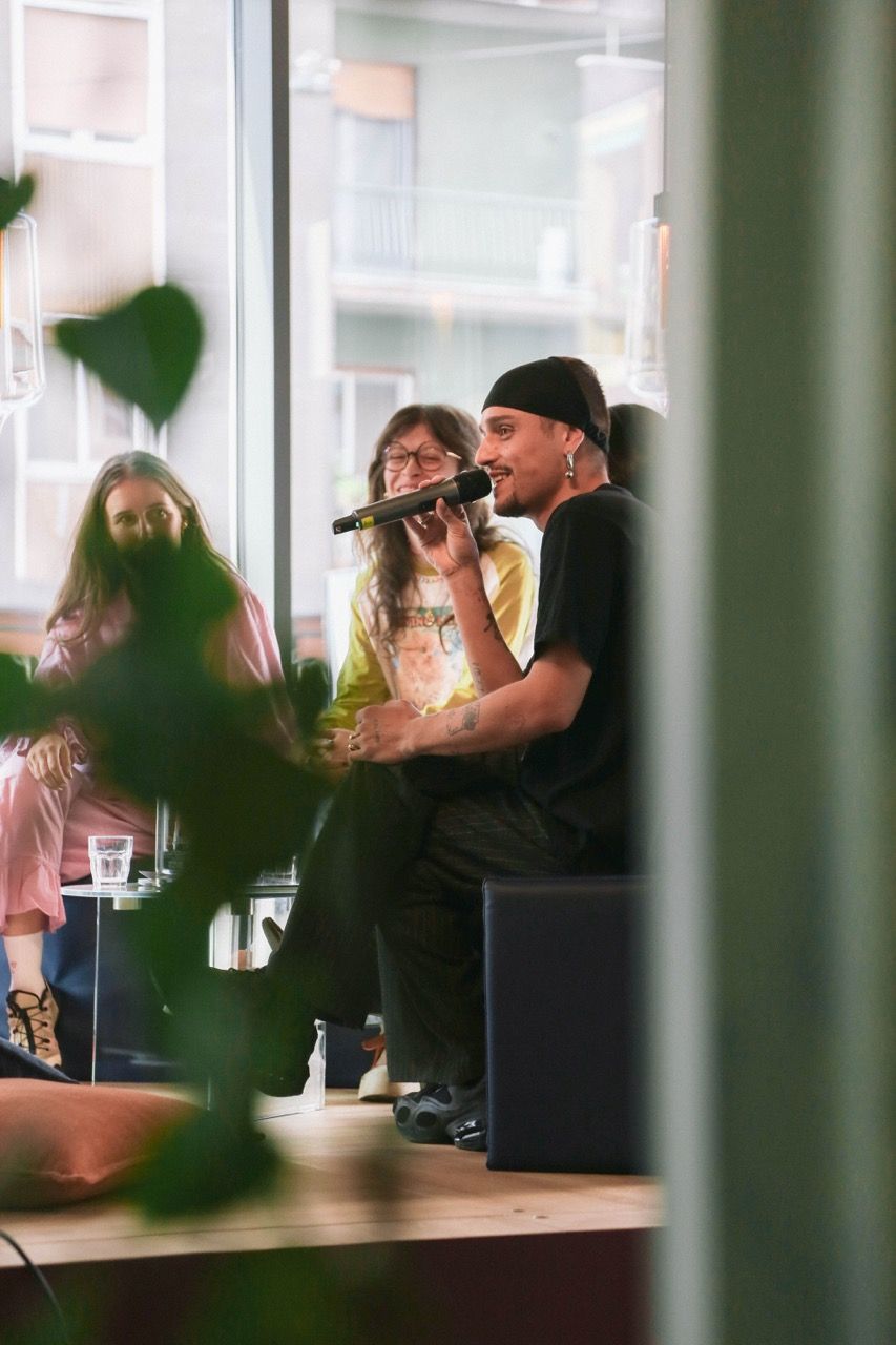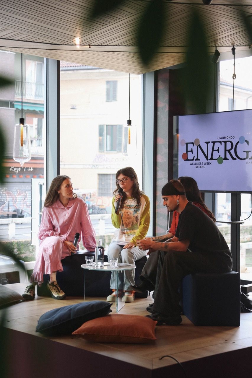 A prendere parte alla conversazione erano presenti Licia Florio, wellness curator, imprenditrice creativa, movement director, co-fondatrice di CIAOMONDO e fondatrice del brand Licia Florio, Alice Manfroni, fondatrice di Here After essential oils, wellness consultant con la passione per l'astrologia e Ethan Lara, artista queer italo-brasiliano, producer e autore con base a Milano. Insieme, questi tre protagonisti della scena social contemporanea hanno discusso il loro modo di vivere la sfera del digitale, parlando del loro modo di gestire il rapporto tra online e offline, tra utilizzo dei social network per lavoro e per vita personale, dei confronti e delle ispirazioni che traggono dalla loro permanenza online e anche delle modalità di distacco da questa sfera, così produttiva e ricca di ispirazioni ma anche con così tanto potenziale distruttivo. Dal doom scrolling al confronto costante con gli altri, passando per il calo nella nostra capacità di concentrarci e di esercitare la capacità critica.