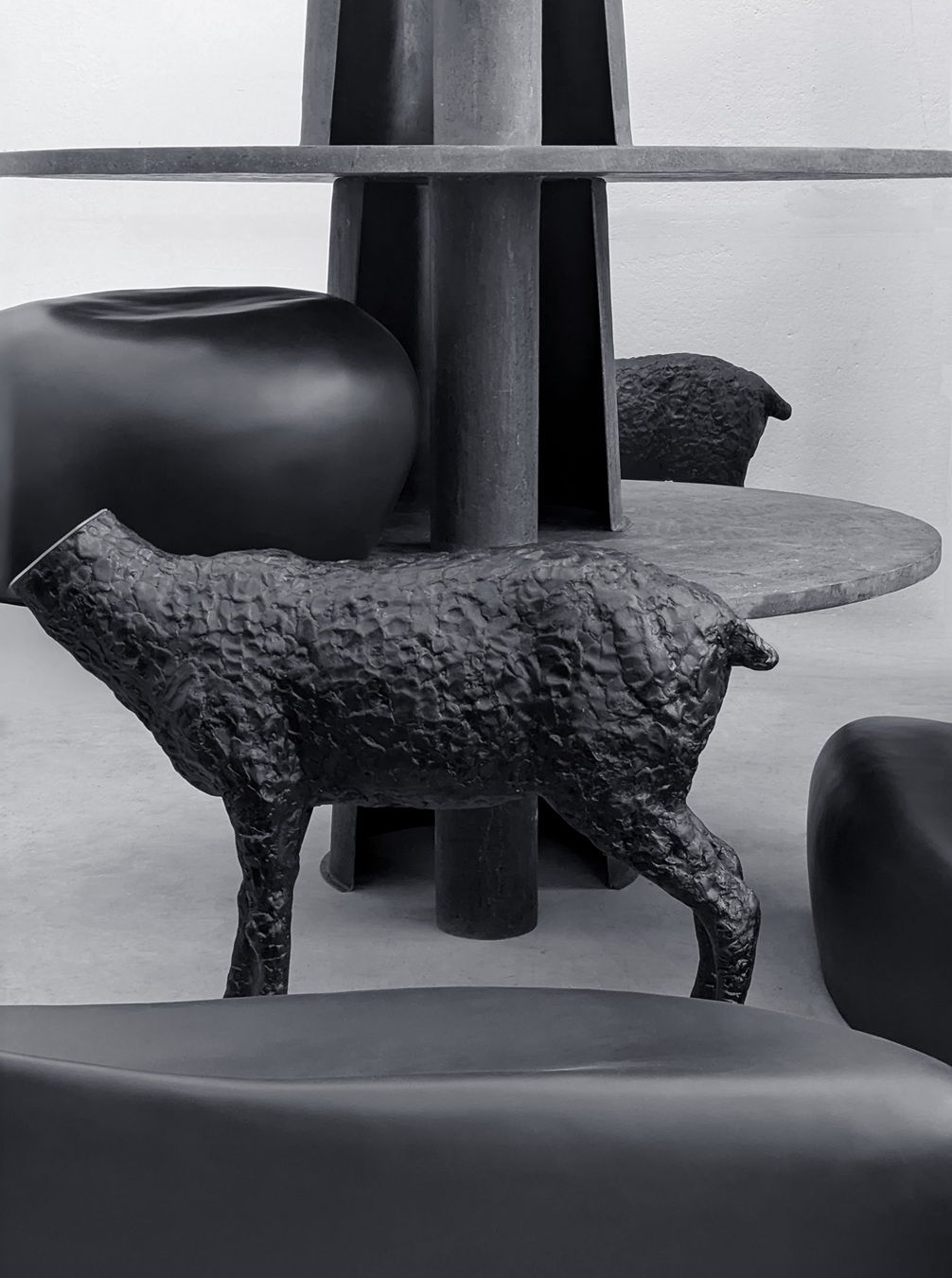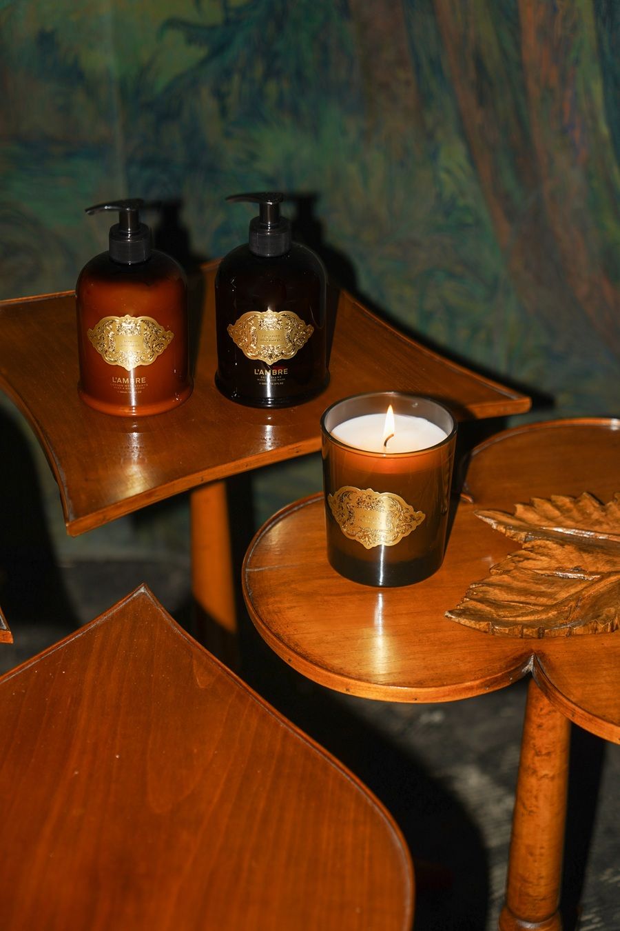 Un appartamento al piano terra in via Giovanni Lulli 2 si trasforma in manifesto abitativo. Qui L’Artisan Parfumeur incontra la visione di Antoine Billore, che costruisce un universo domestico fatto di oggetti ibridi e memorie ricombinate. Billore lavora per stratificazione emotiva. Recupera oggetti dimenticati, materiali trascurati, frammenti di passato e li ricompone in forme nuove. Le sue sedute in legno massello, essenziali ma attraversate da inserti decorativi, dialogano con paraventi che diventano superfici narrative, con piccoli quadri che invadono lo spazio bagno, con tappeti che registrano le ombre dei mobili come tracce temporali. Tutto è familiare e straniante allo stesso tempo. Non c’è nostalgia, ma un’operazione quasi chirurgica sul concetto di abitare. Le fragranze di L’Artisan Parfumeur si insinuano negli ambienti come presenze invisibili, amplificando la dimensione sensoriale. È una casa che non esiste, ma che potrebbe esistere. E proprio per questo funziona.