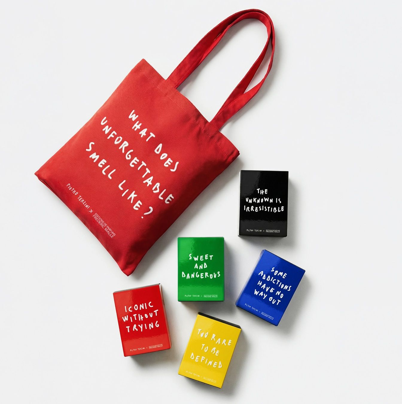 Pietro Terzini incontra Frédéric Malle e traduce cinque icone olfattive della Maison (Portrait of a Lady, Promise, Musc Ravageur, Carnal Flower e Contre-Jour) in altrettanti pack in limited edition disponibili dal 20 aprile. Per celebrare questa partnership, la boutique di Editions de Parfums Frédéric Malle in via Pietro Verri 2 si trasforma completamente. All’ingresso, il claim What does unforgettable smell like? accoglie i visitatori come un mantra contemporaneo. Sopra, un soffitto di rose rosse sospese costruisce un impatto scenografico quasi cinematografico. Il colore domina lo spazio, saturo, avvolgente, mentre le parole di Terzini scorrono sulle superfici, si riflettono, si moltiplicano. In questo ambiente, anche i gesti più semplici come provare una fragranza, vaporizzarla sulla pelle, si trasformano in atti performativi, dissolvendo il confine tra esperienza d’acquisto e installazione artistica. Il progetto si estende alla città, contaminando Milano con una presenza diffusa, e continua nel tempo con una serie di appuntamenti che trasformano la boutique in luogo di incontro. Terzini stesso sarà presente in momenti dedicati al pubblico, firmando opere e attivando un dialogo diretto, quasi intimo, con i visitatori.