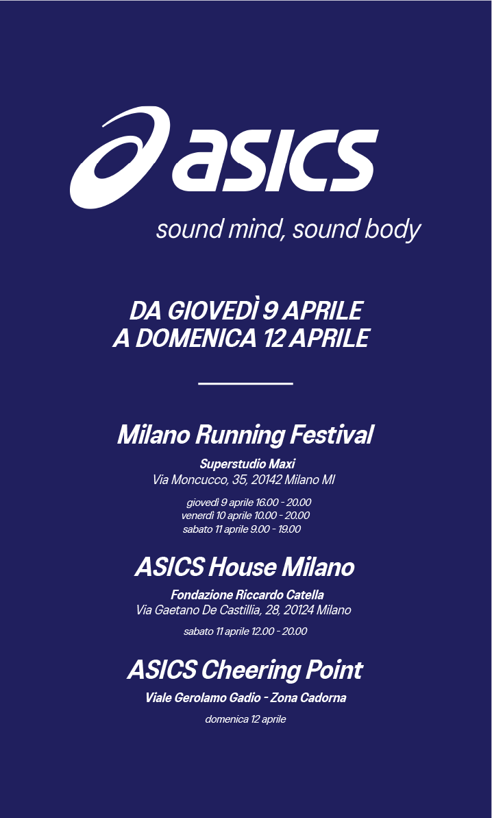 Il brand annuncia, inoltre, un’importante novità con l’apertura di uno spazio esperienziale dedicato a tutti i runner e agli sportivi. Nella giornata di sabato 11 aprile il brand giapponese apre le porte di ASICS House Milano all’interno di Fondazione Riccardo Catella, nella suggestiva cornice del parco BAM - Biblioteca degli Alberi Milano. Asics presenta, infatti, un hub dinamico e immersivo dove il running è protagonista non solo come performance, ma come cultura, connessione e stile di vita. I visitatori potranno entrare in contatto diretto con il brand e con le sue origini, che si fondano sull’acronimo Anima Sana In Corpore Sano, attraverso attivazioni, contenuti e momenti di condivisione.