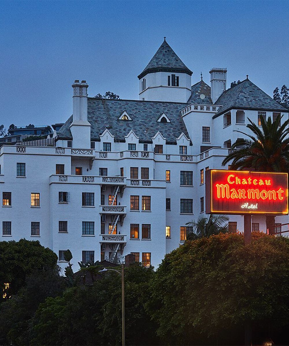 Teatro di scandalosi intrecci amorosi, stravaganze di stelle del rock e macabre scomparse: allo Chateau Marmont ognuna delle 63 stanze ha una storia da raccontare. Pochi luoghi nel mondo hanno una così potente fama e fascino da attirare tutte le star dello show-biz dal 1929, data di apertura. Da Bette Davis a Lana del Rey passando per Helmut Newton e i Led Zeppelin, tantissime altre star hanno scelto la struttura per soggiornare o addirittura vivere alcuni mesi, rendendo il castello californiano simbolo della celebrity culture.